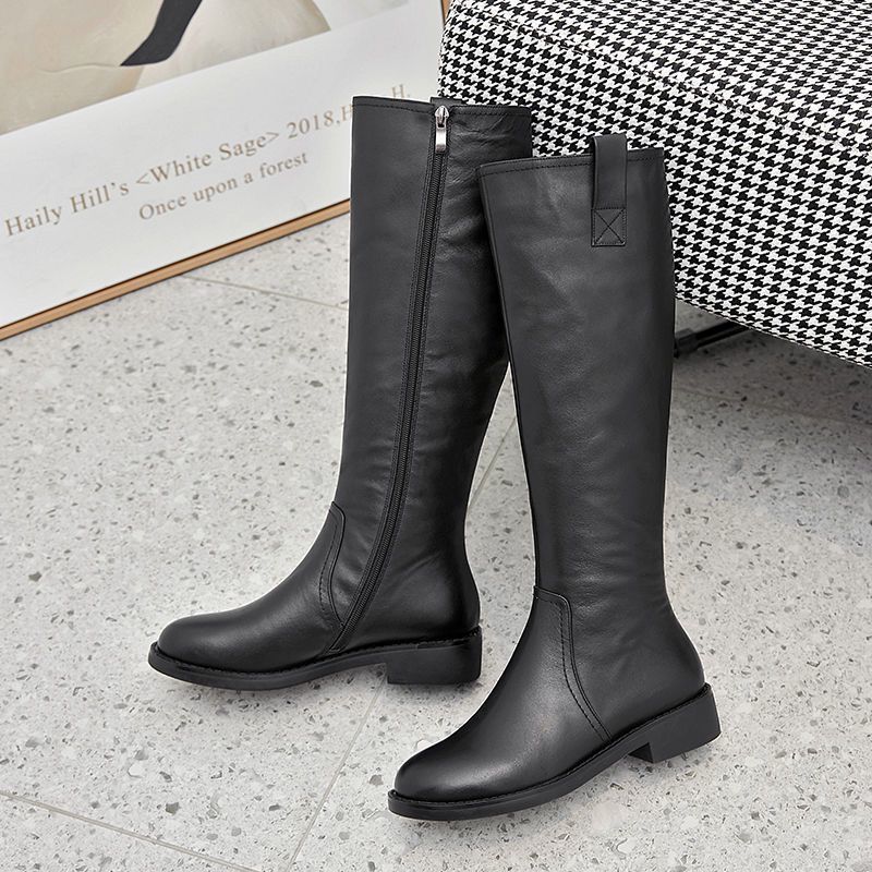 软皮马丁靴小个子长筒不过膝靴子马丁靴2025春秋新款骑士靴女高筒