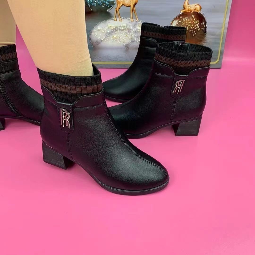 2025年秋冬季新款厚底粗跟软皮软底加绒中老年妈妈马丁靴耐磨棉靴