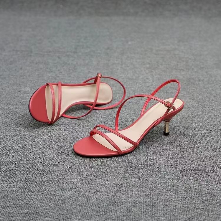ヨーロッパステーション 2025 新しい夏の女性のサンダルニッチワンラインオープントゥ多用途セクシーなスティレットハイヒールサンダル
