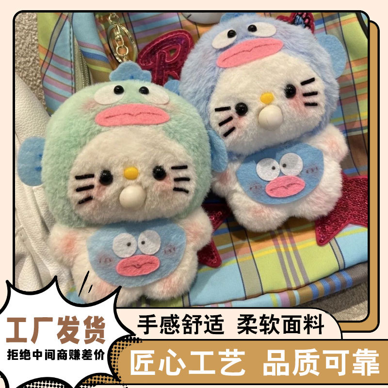 抖音の猫ちゃんペンダントぬいぐるみおもちゃ、醜い魚、キティちゃん、バッグ飾り、キーホルダー、布製人形、泡を吐く