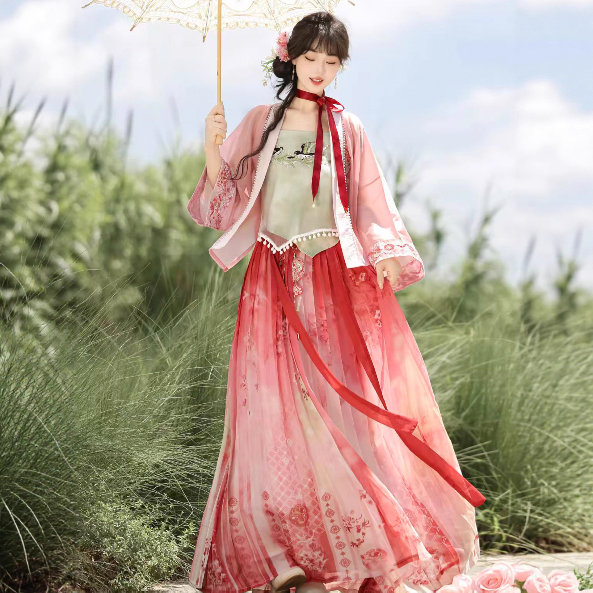原创宋制汉服女2025新款春秋刺绣吊带超仙百褶裙日常国风古风套装