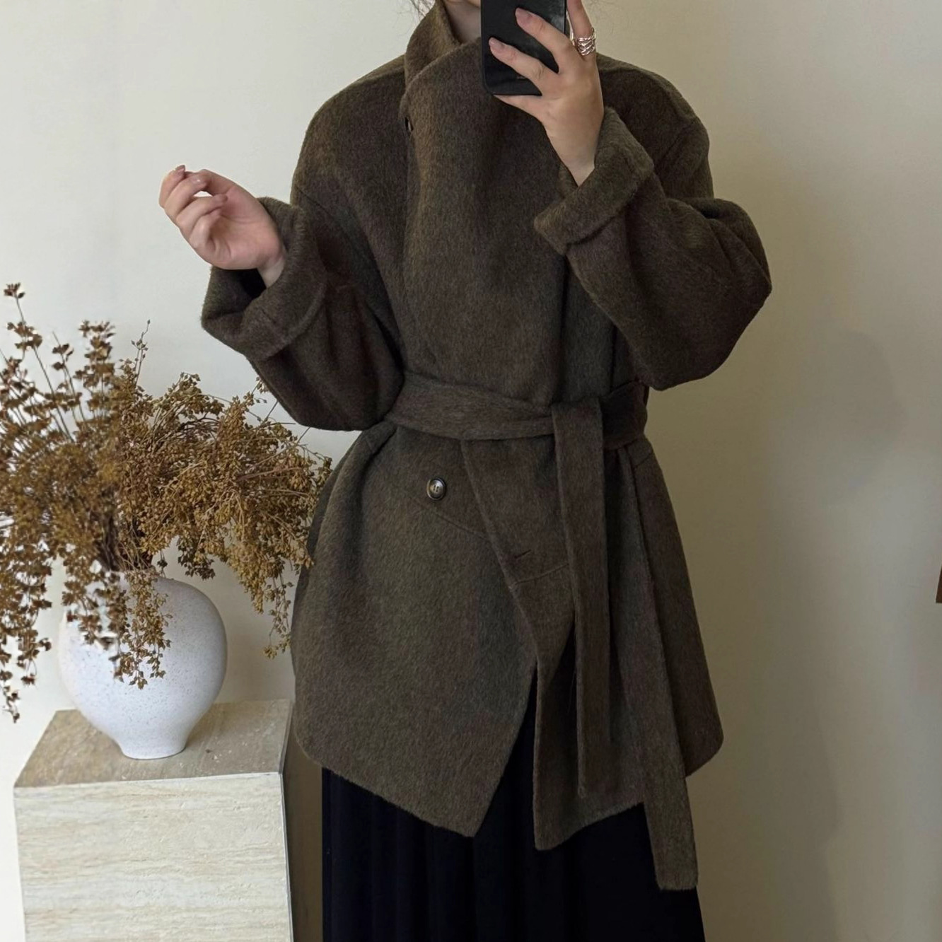 羊驼毛高级感翻领羊毛大衣简约收腰系带小个子2025冬新款毛呢外套