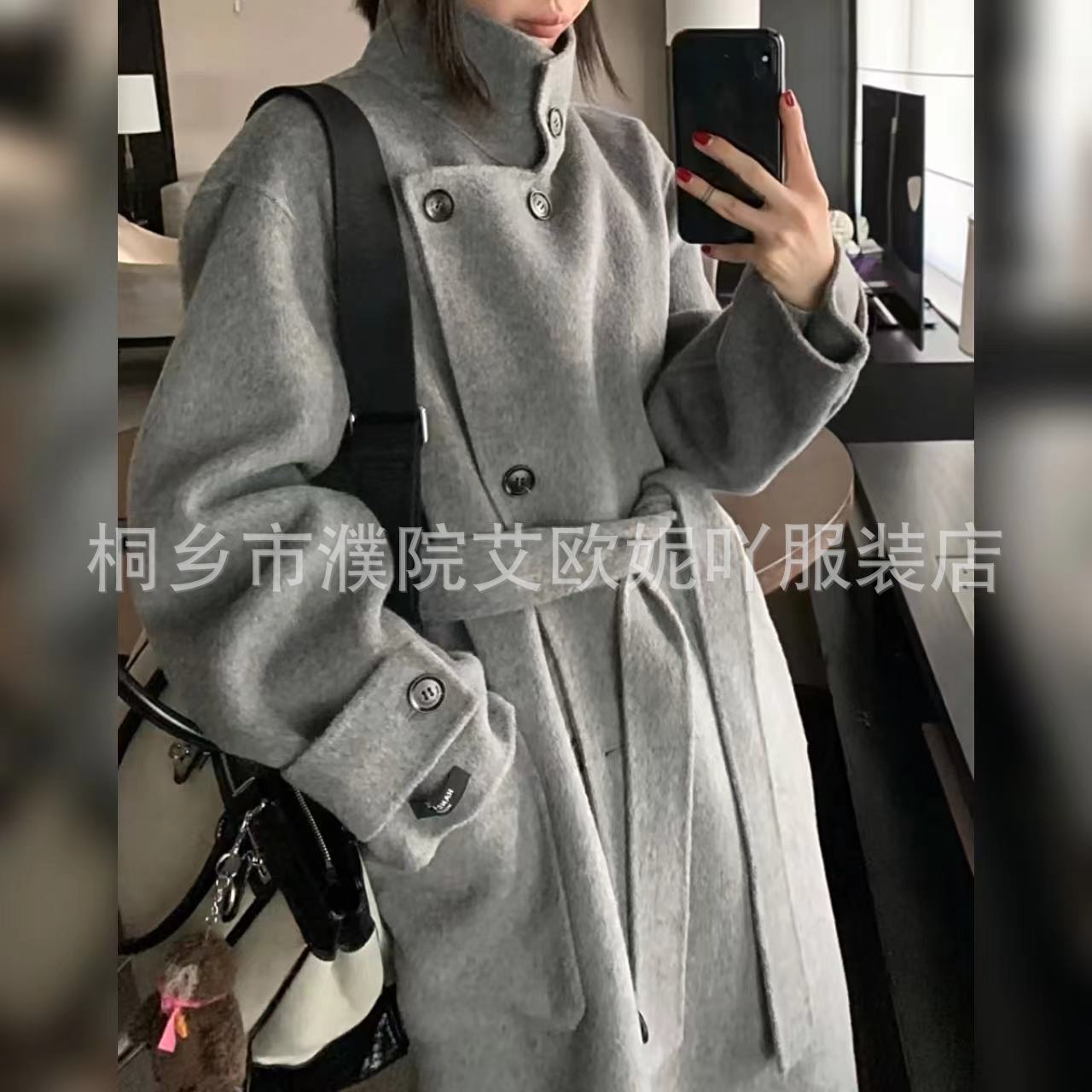 重磅经典立领大衣新款双面羊毛大衣气质高级宽松腰带毛呢外套女冬