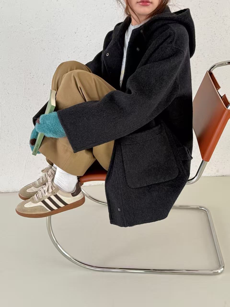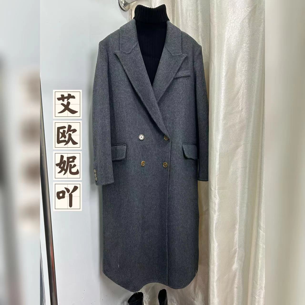 【コレクションシリーズ】2024冬の高級な輪郭がゆるい中長タイプの手作業でウールコートを縫う手が暖かい