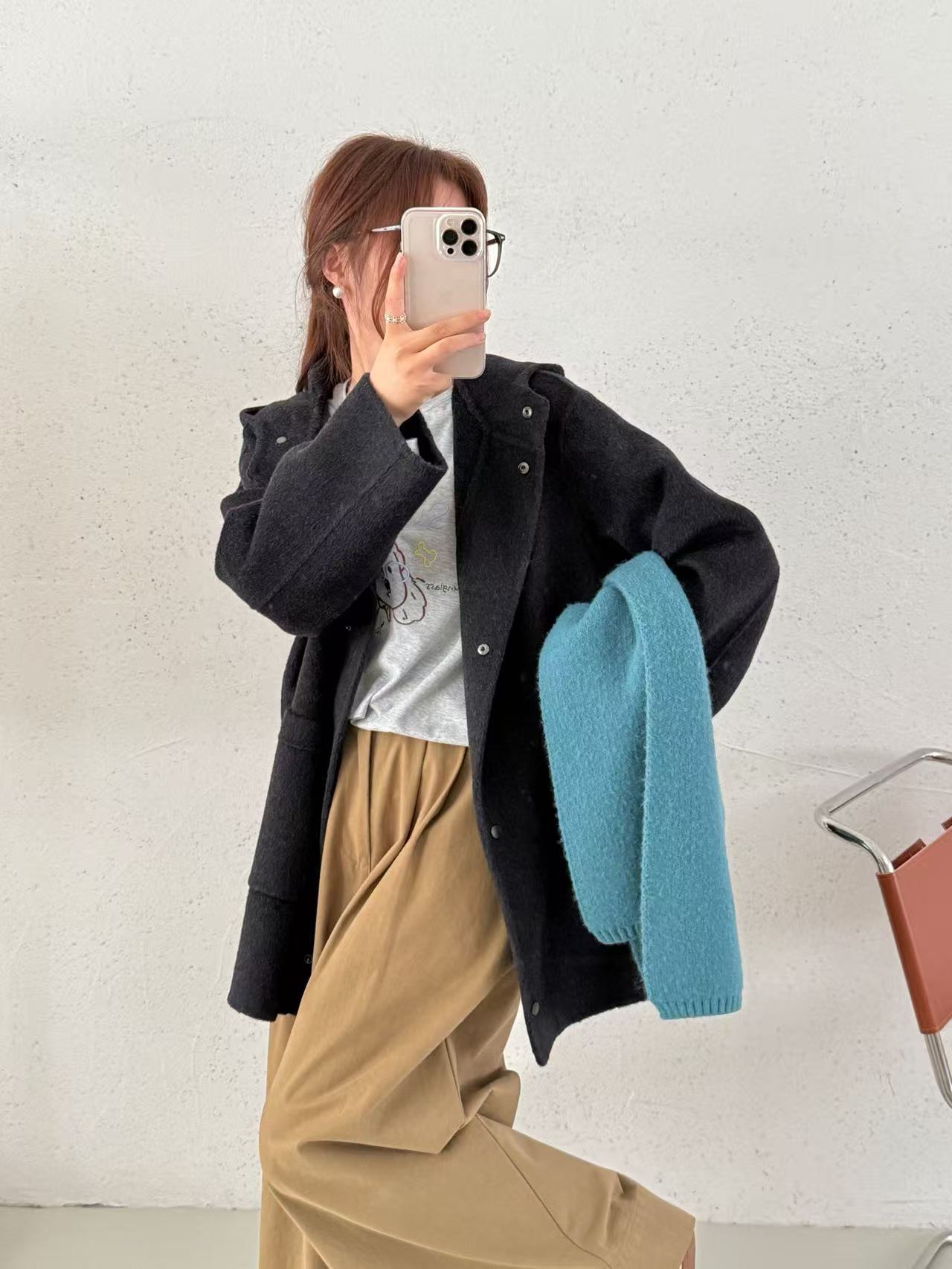 升级山羊绒系列拉链韩系双面羊毛大衣小个子短款宽松百搭毛呢外套