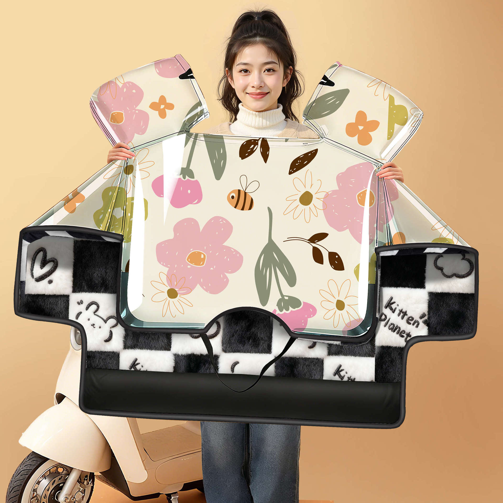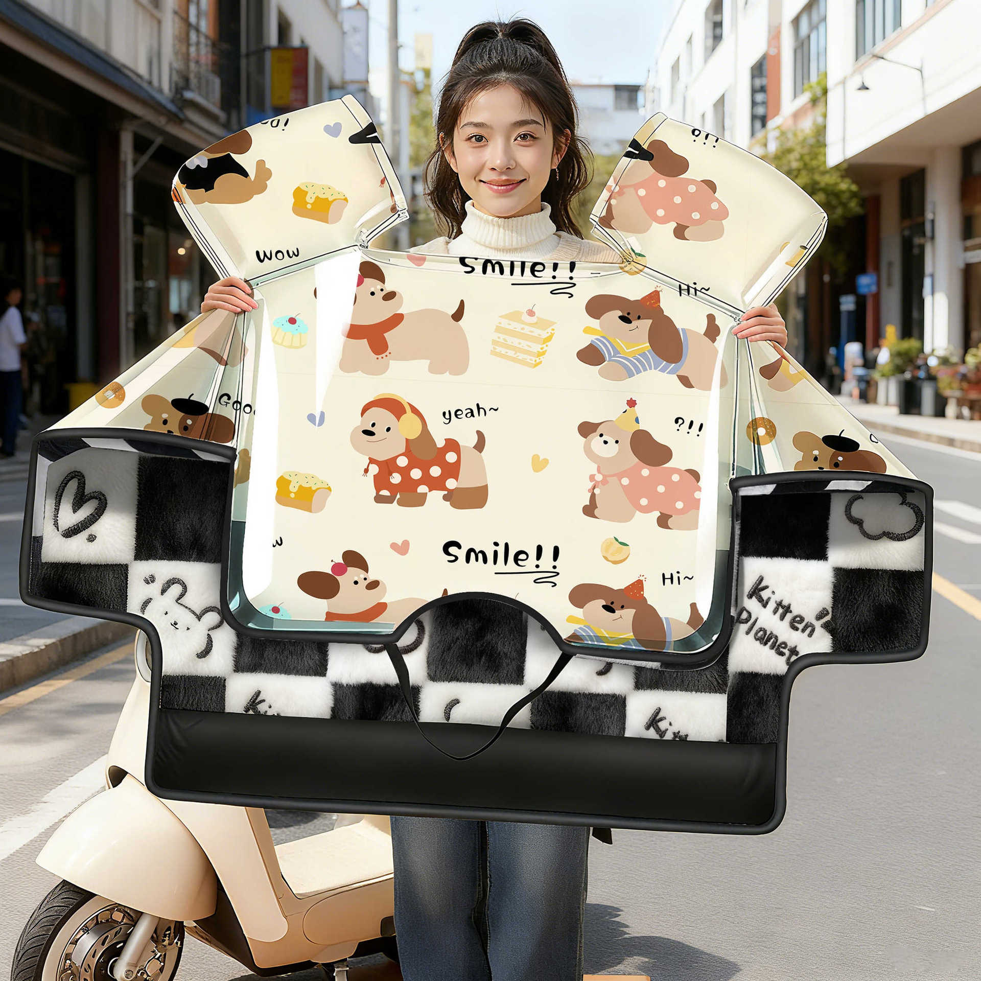 冬季电动车挡风被加厚保暖卡通可爱防水防风电瓶车通用高颜值挡风