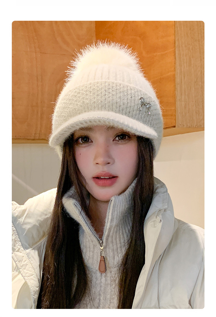 冬季新款鸭舌毛线帽女加厚保暖护耳毛球针织帽逛街骑车防寒帽子潮
