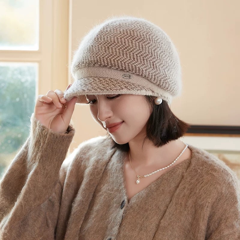 新款帽子女冬季韩版潮加绒加厚护耳保暖百搭鸭舌针织帽兔毛毛线帽