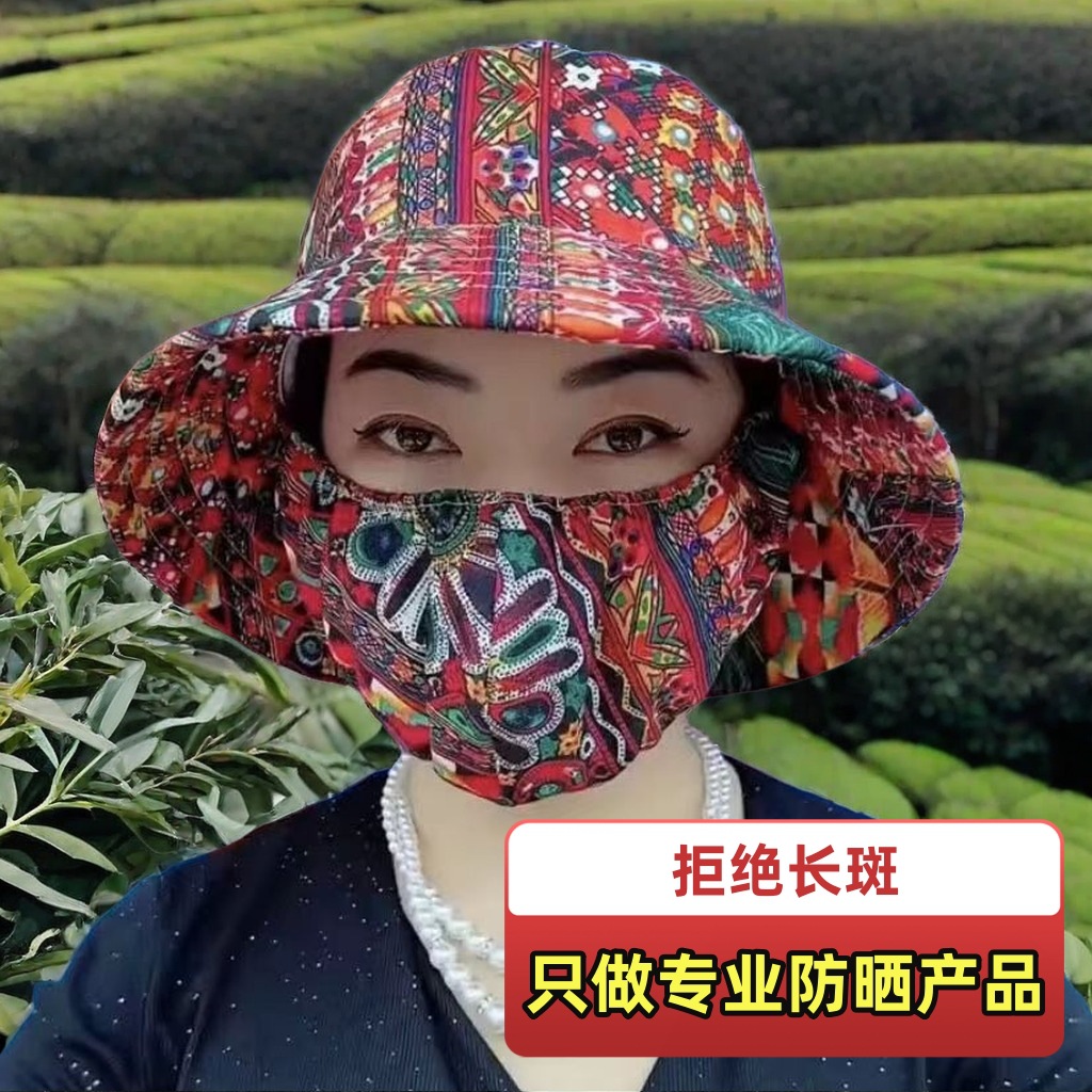 ベトナム日焼け止めマスク帽子夏の女性日焼け止め帽子顔を隠す紫外線防止太陽帽子採茶帽子