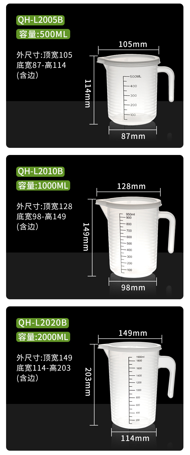 规格 250ML【带盖】PP黑刻度条纹量杯(150个/箱),500ML【带盖】PP黑刻度条纹量杯(150个/箱),950ML【带盖】PP黑刻度条纹量杯(200个/箱),1900ML【带盖】PP黑刻度条纹量杯(100个/箱),3500ML【带盖】PP黑刻度条纹量杯(40个/箱),5000ML【带盖】PP黑刻度条纹量杯(40个/箱),250ML【无盖】PP黑刻度条纹量杯(150个/箱),500ML【无盖】PP黑刻度条纹量杯(150个/箱),950ML【无盖】PP黑刻度条纹量杯(200个/箱),1900ML【无盖】PP黑刻度条纹量杯(100个/箱),3500ML【无盖】PP黑刻度条纹量杯(40个/箱),5000ML【无盖】PP黑刻度条纹量杯(40个/箱),250ML【带盖】PP白刻度条纹量杯(150个/箱),500ML【带盖】PP白刻度条纹量杯(150个/箱),1000ML【带盖】PP白刻度条纹量杯(200,2000ML【带盖】PP白刻度条纹量杯(100个/箱),3500ML【带盖】PP白刻度条纹量杯(40个/箱),5000ML【带盖】PP白刻度条纹量杯(40个/箱),250ML【无盖】PP白刻度条纹量杯(150个/箱),500ML【无盖】PP白刻度条纹量杯(150个/箱),1000ML【无盖】PP白刻度条纹量杯(200个/箱),2000ML【无盖】PP白刻度条纹量杯(100个/箱),3500ML【无盖】PP白刻度条纹量杯(40个/箱),5000ML【无盖】PP白刻度条纹量杯(40个/箱)