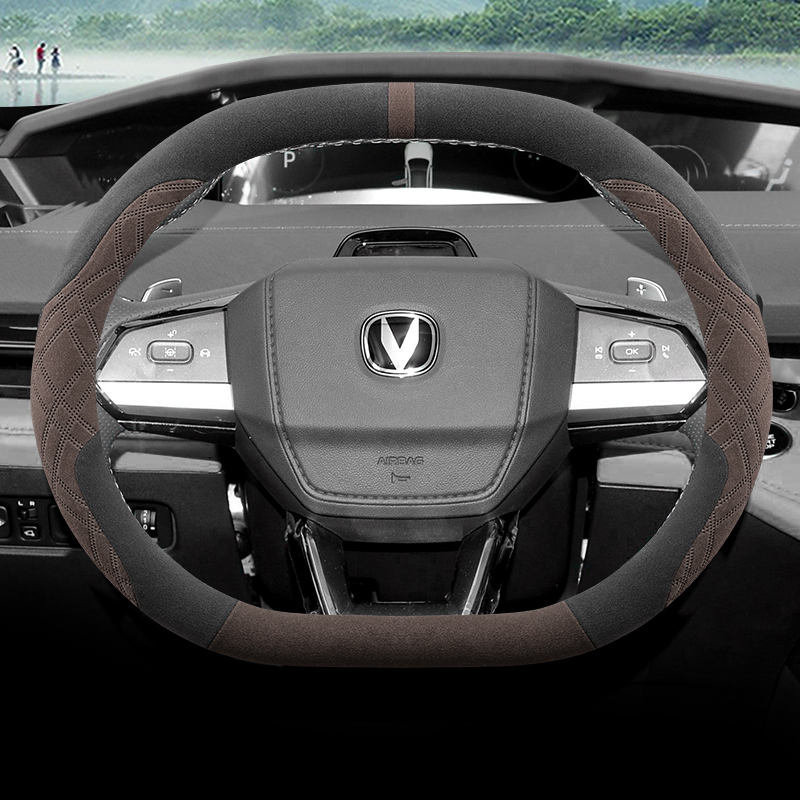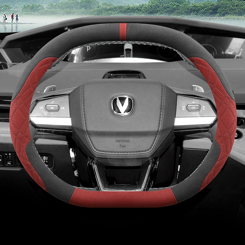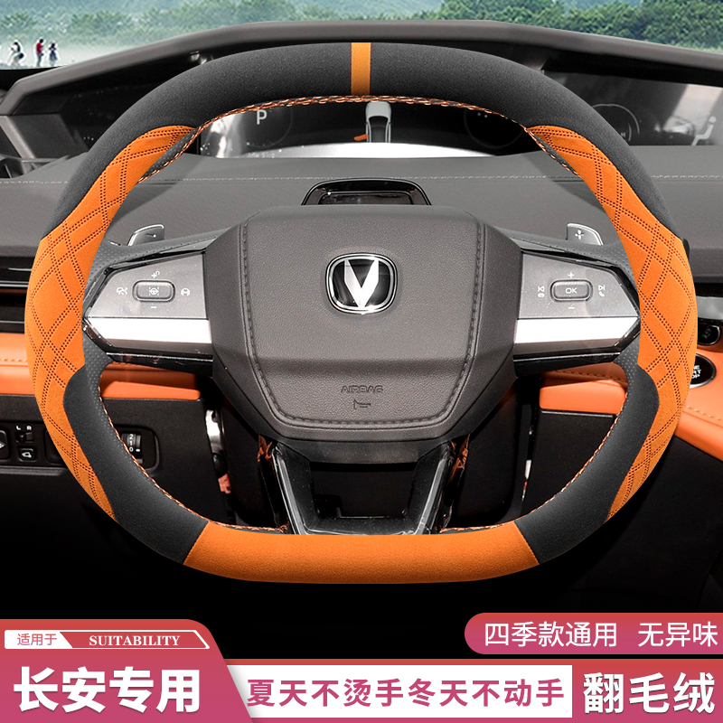 适用长安univ方向盘套逸达uniK24款逸动第二代三代cs55plus翻毛皮