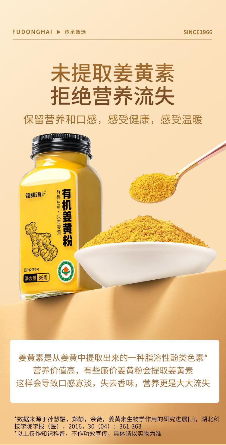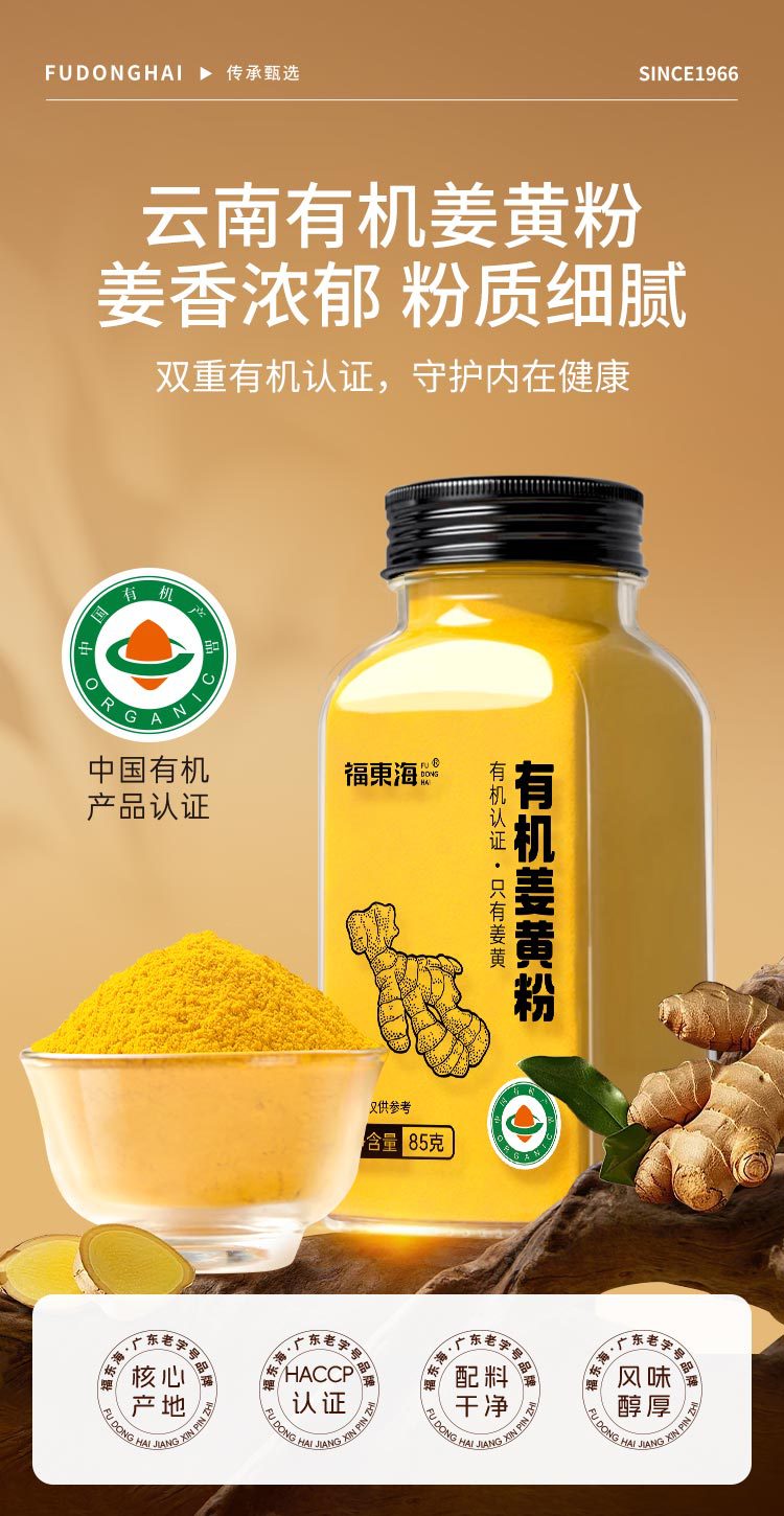 福东海有机姜黄粉85克 纯生姜粉云南小黄姜粉烘焙调味料批发代发
