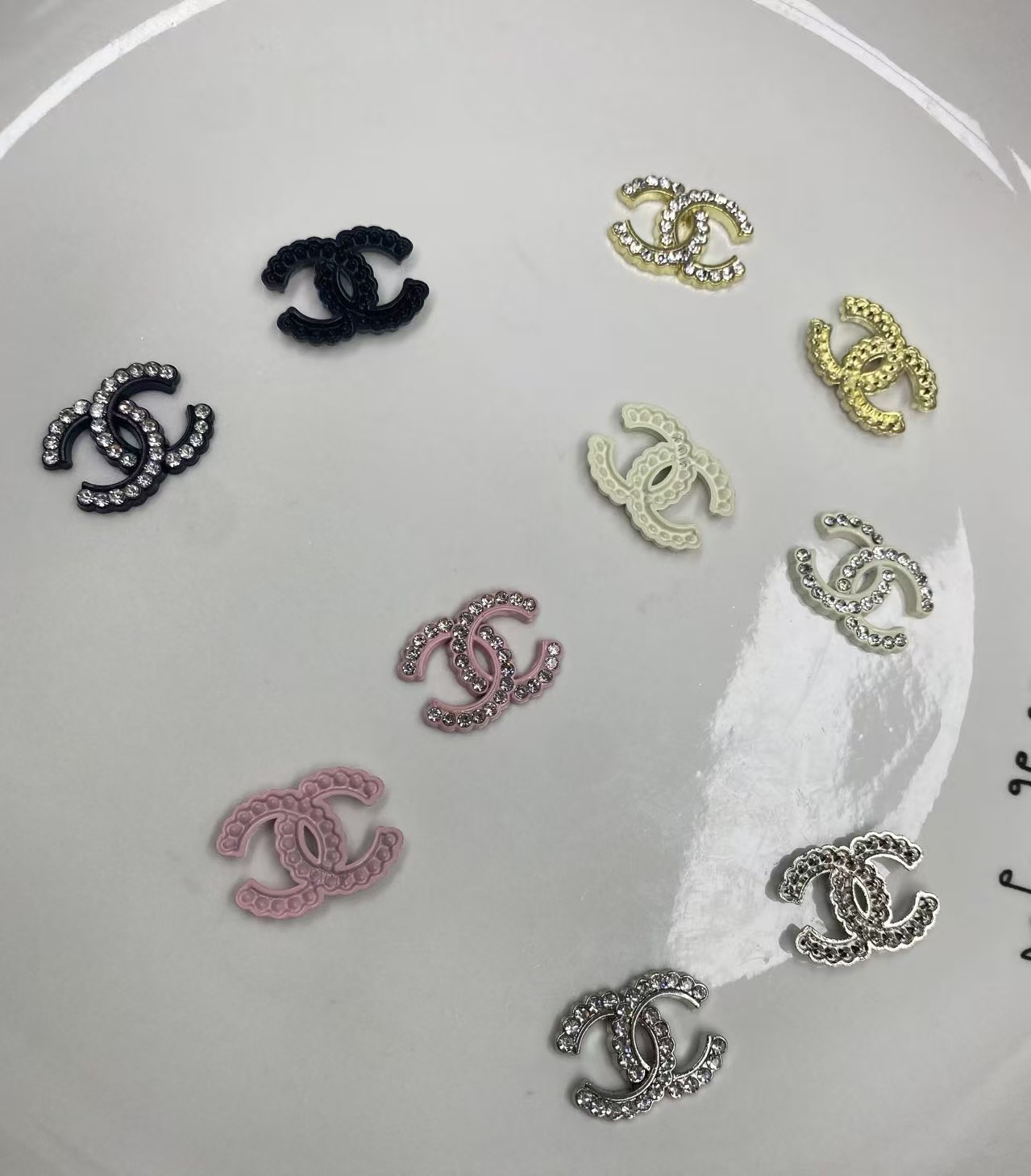 爆款时尚立体满钻双C英文字母DIY饰品超闪极光钻百搭饰品配件批发