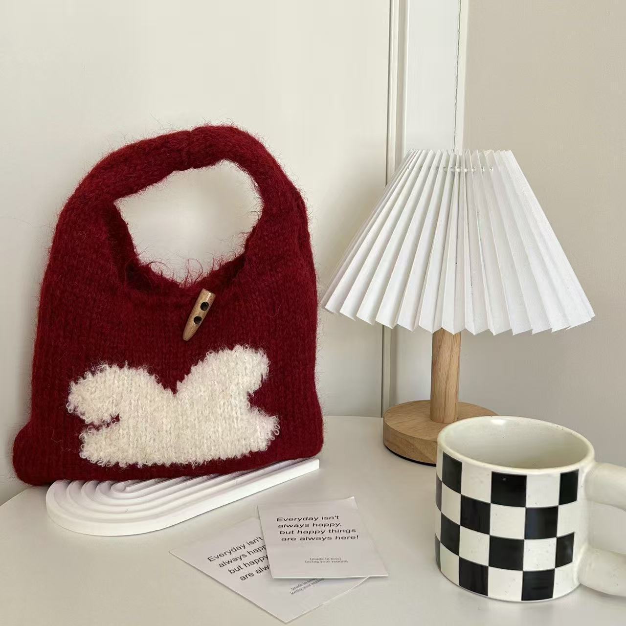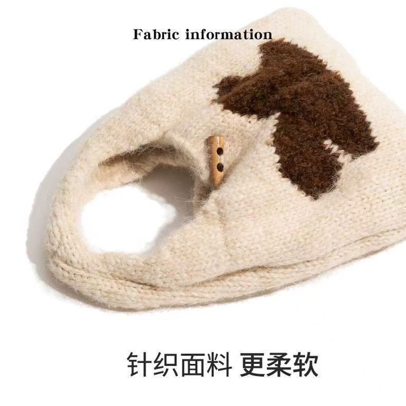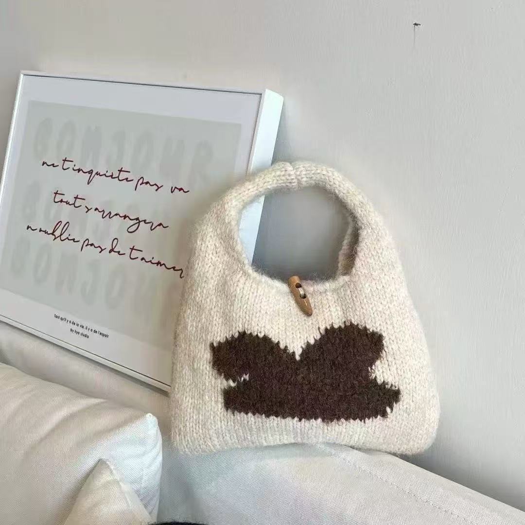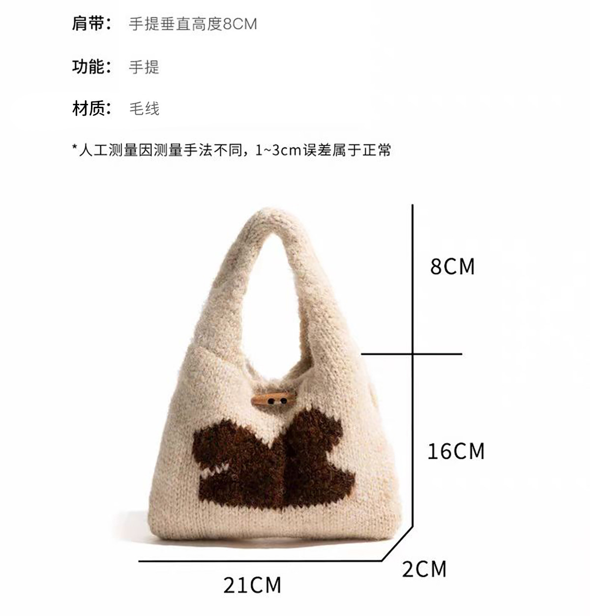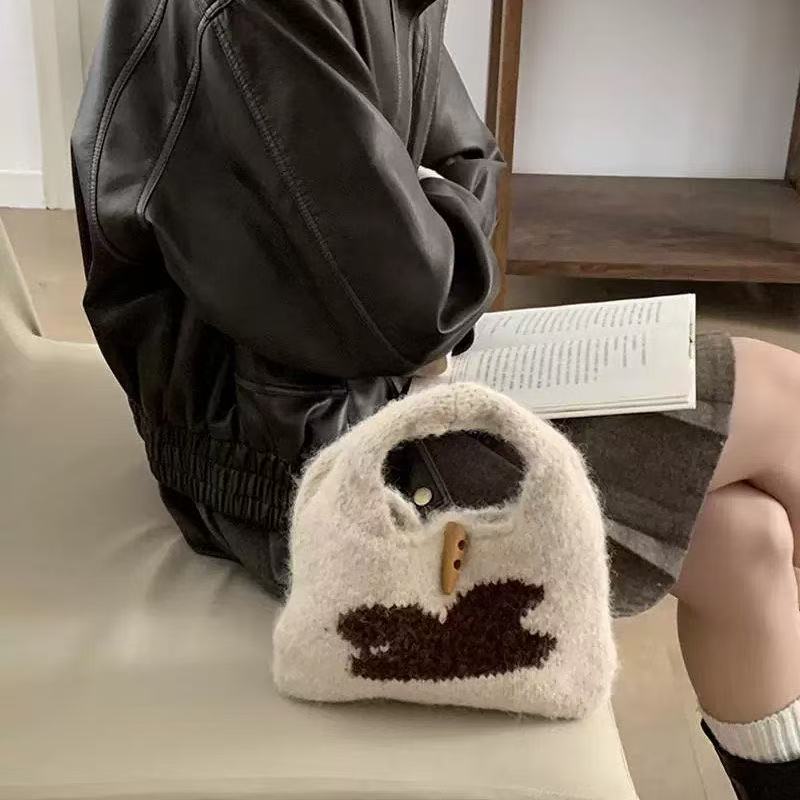 新款毛绒针织包手提包可爱卡通图案小众设计感混色编织包手机包
