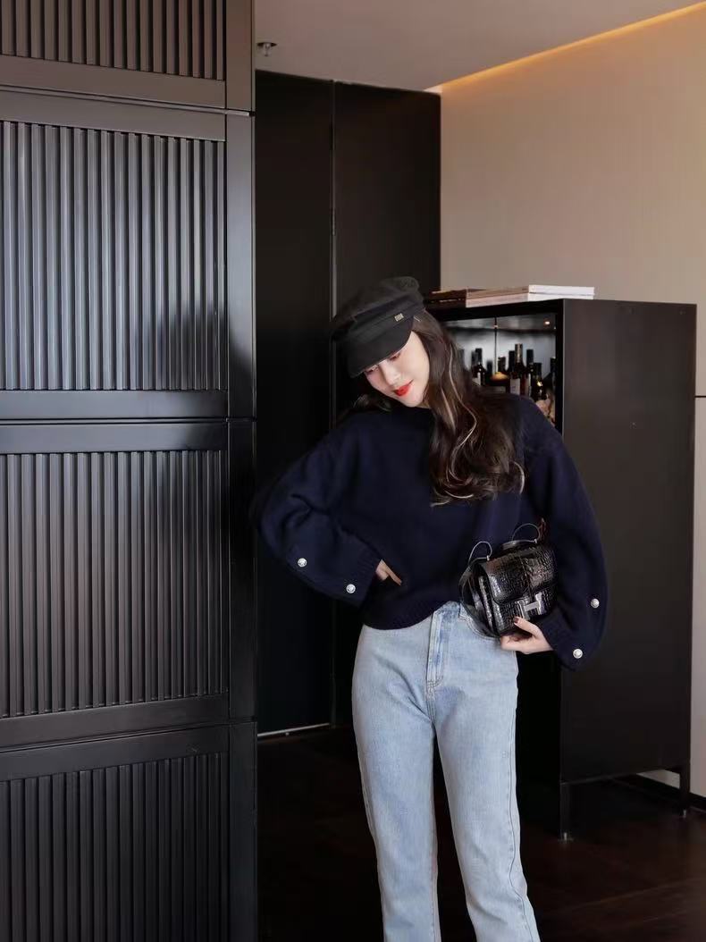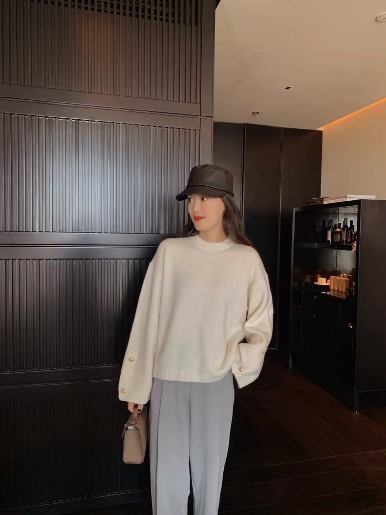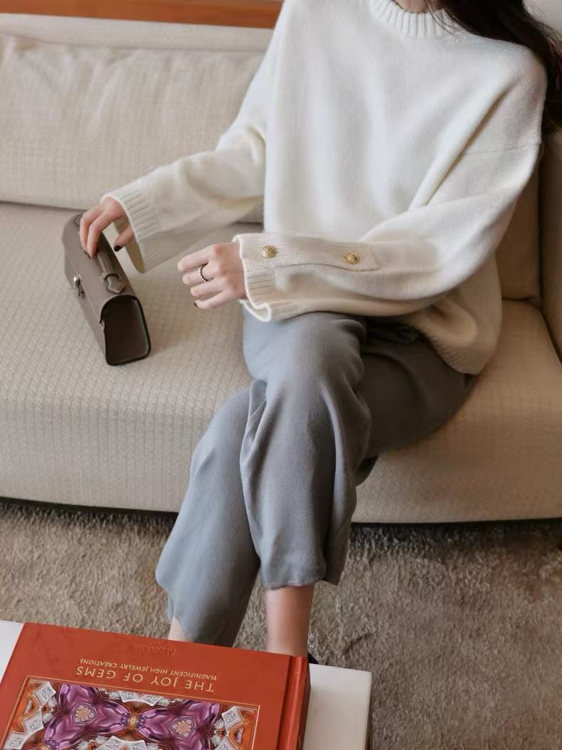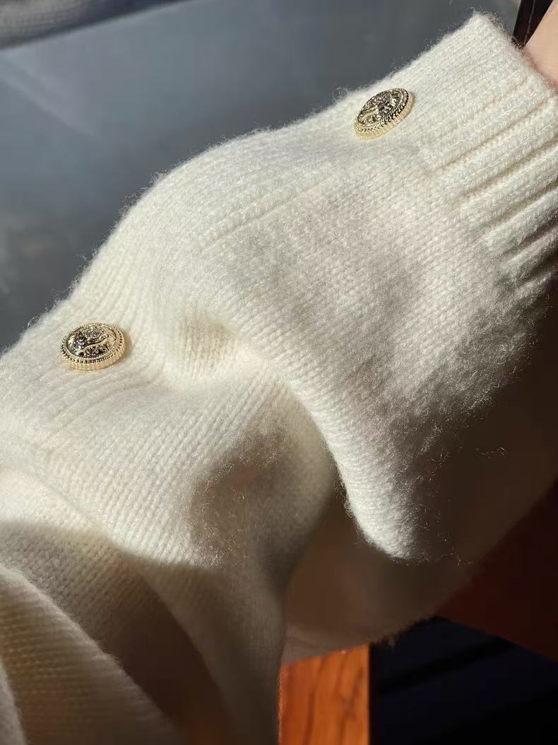 2024秋冬新作韓国版女性丸首長袖ニットカーディガンカシミヤの上着