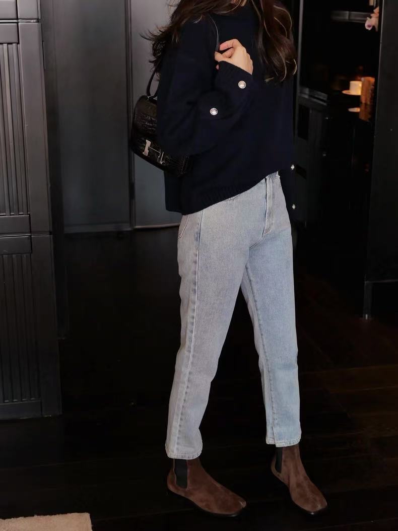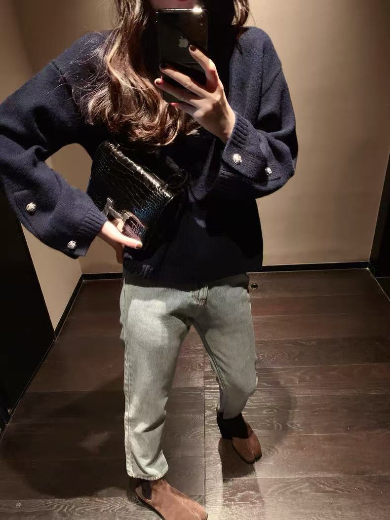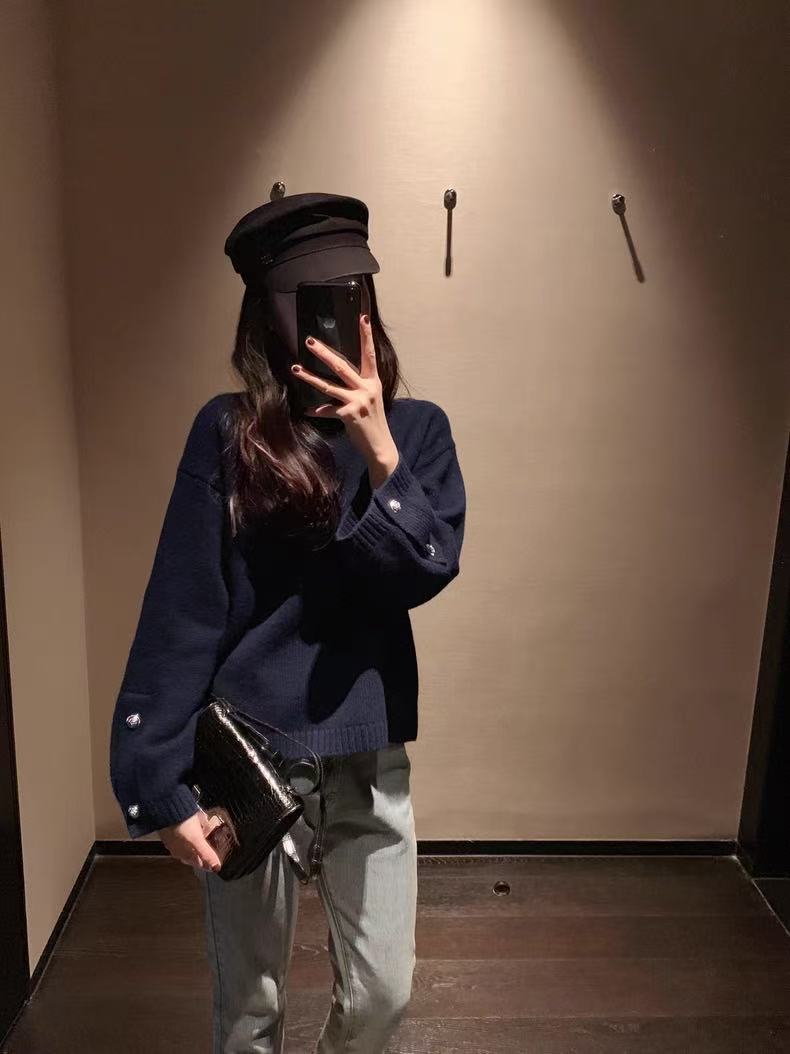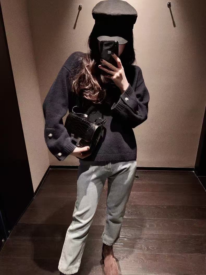 2024秋冬新作韓国版女性丸首長袖ニットカーディガンカシミヤの上着