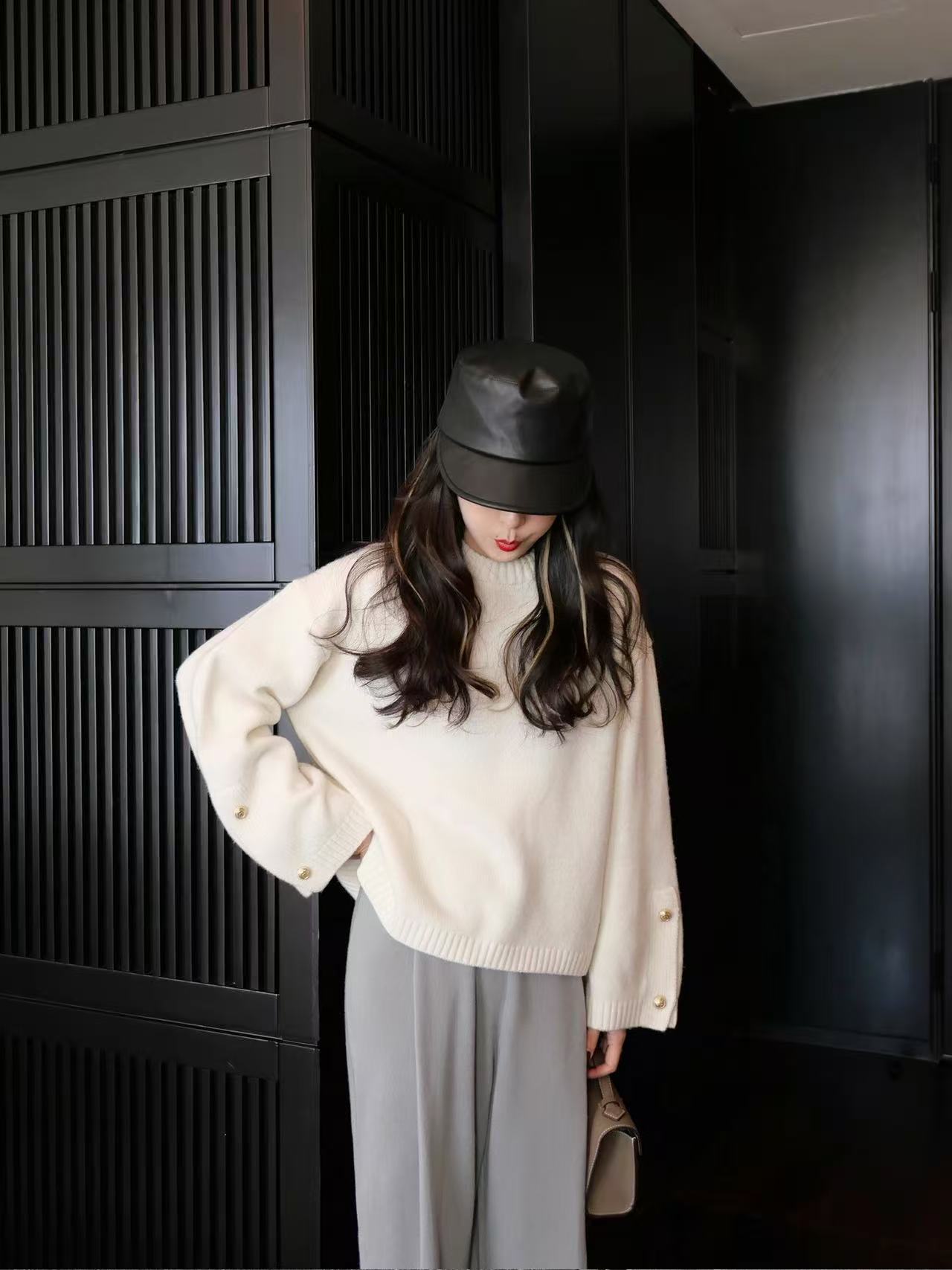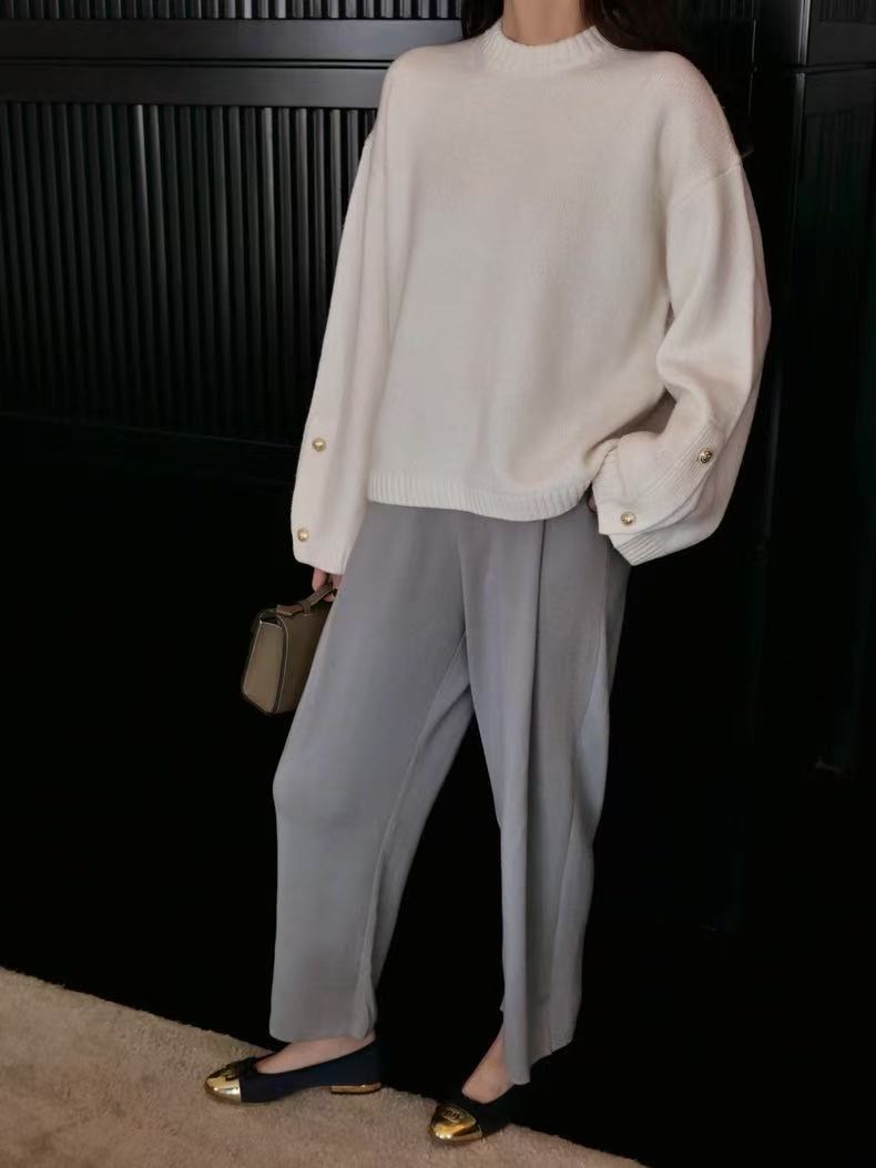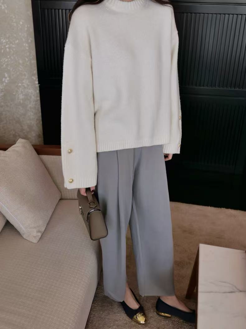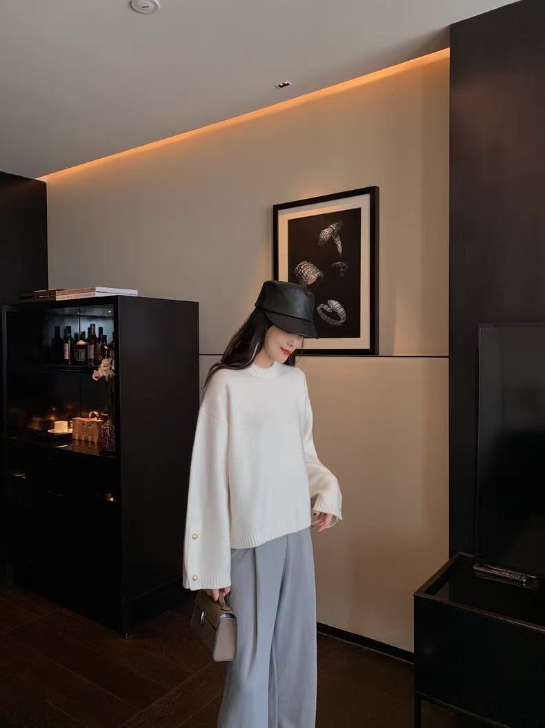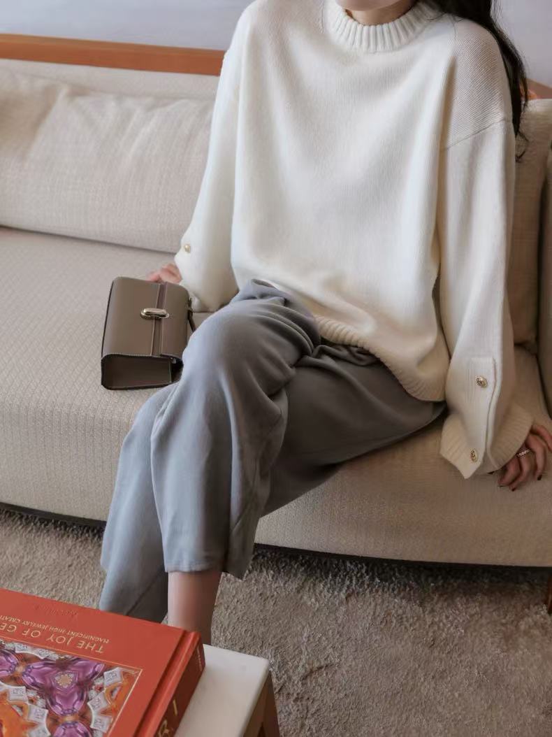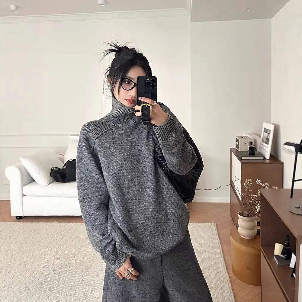 灰色羊毛衫女polo领套头秋冬新款宽松慵懒翻领针织羊毛衫上衣外穿