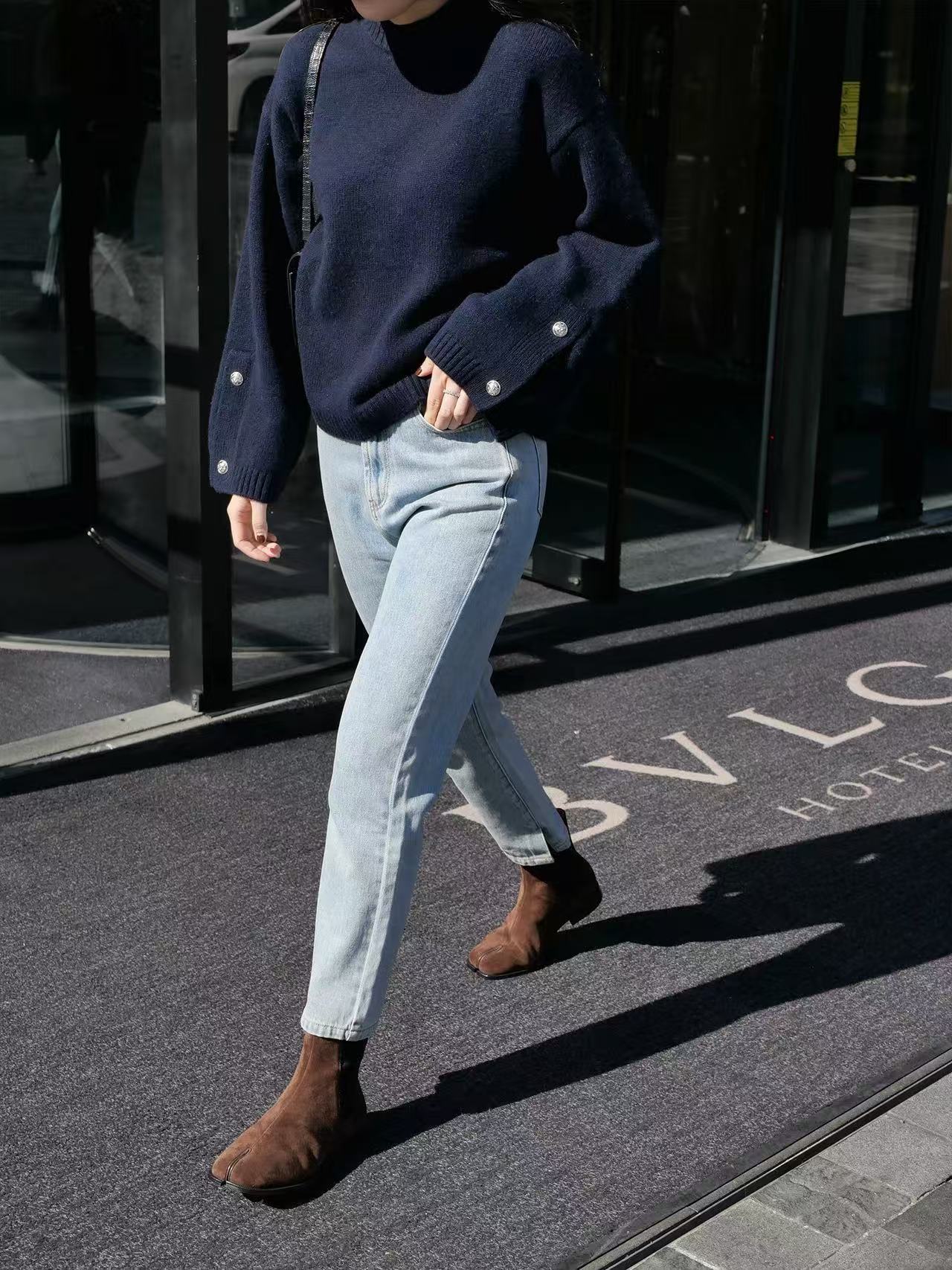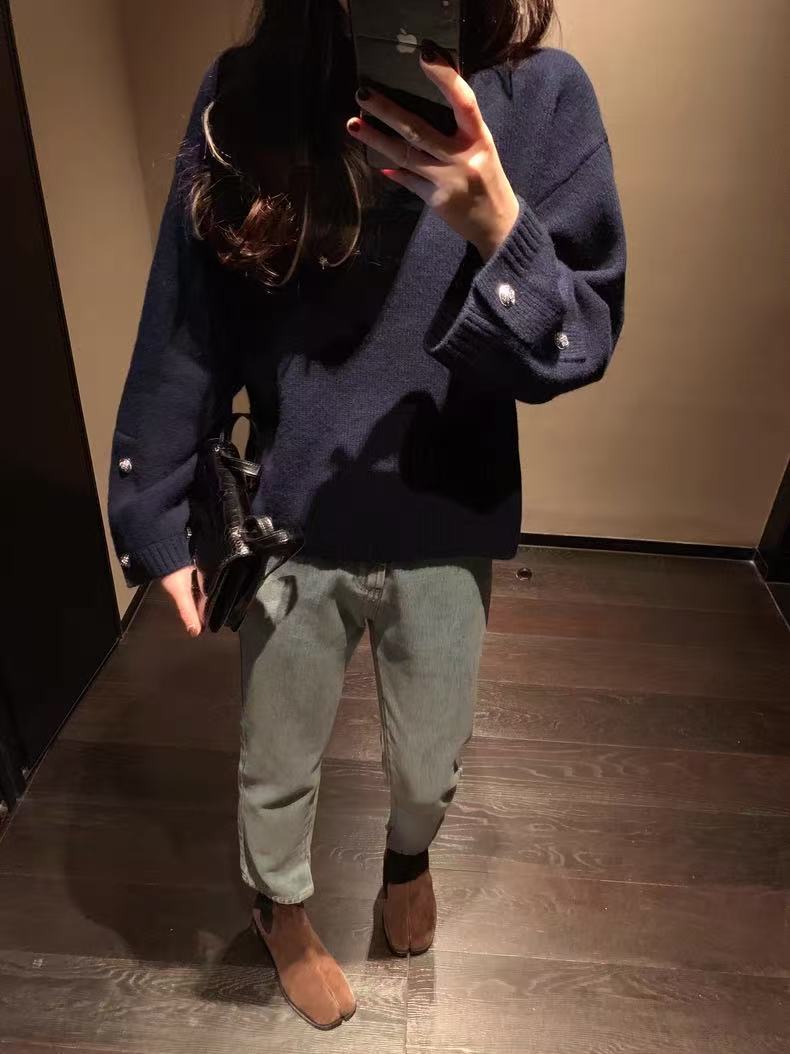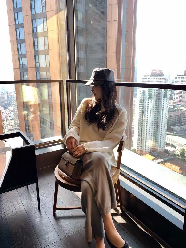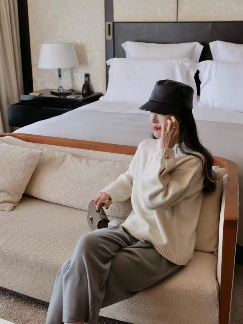 现货厂家直批 高颜值美貌三色 轻S拉毛工艺QUAN羊绒V领针织衫女