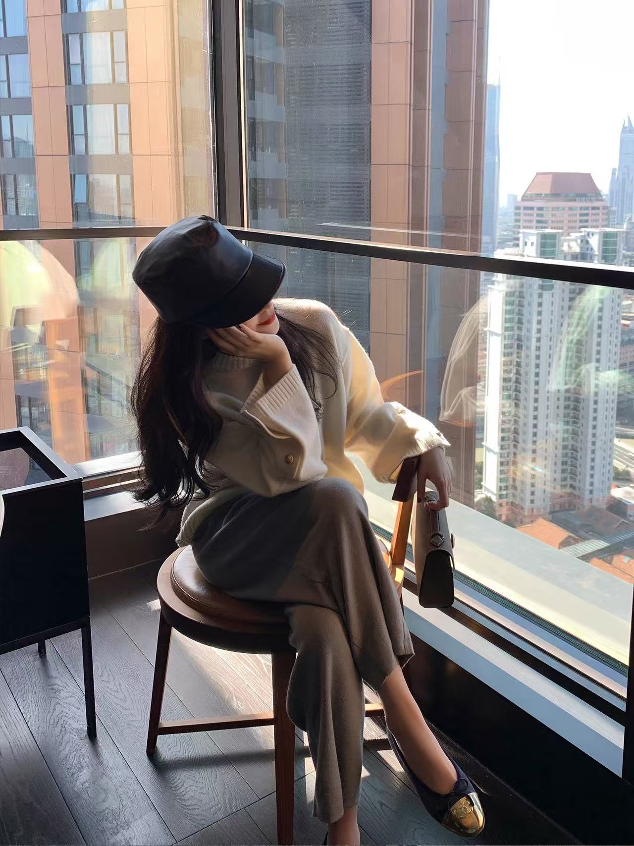女士法式高领毛衣春秋加厚针织打底羊毛衫短开衫外套100纯羊毛衫