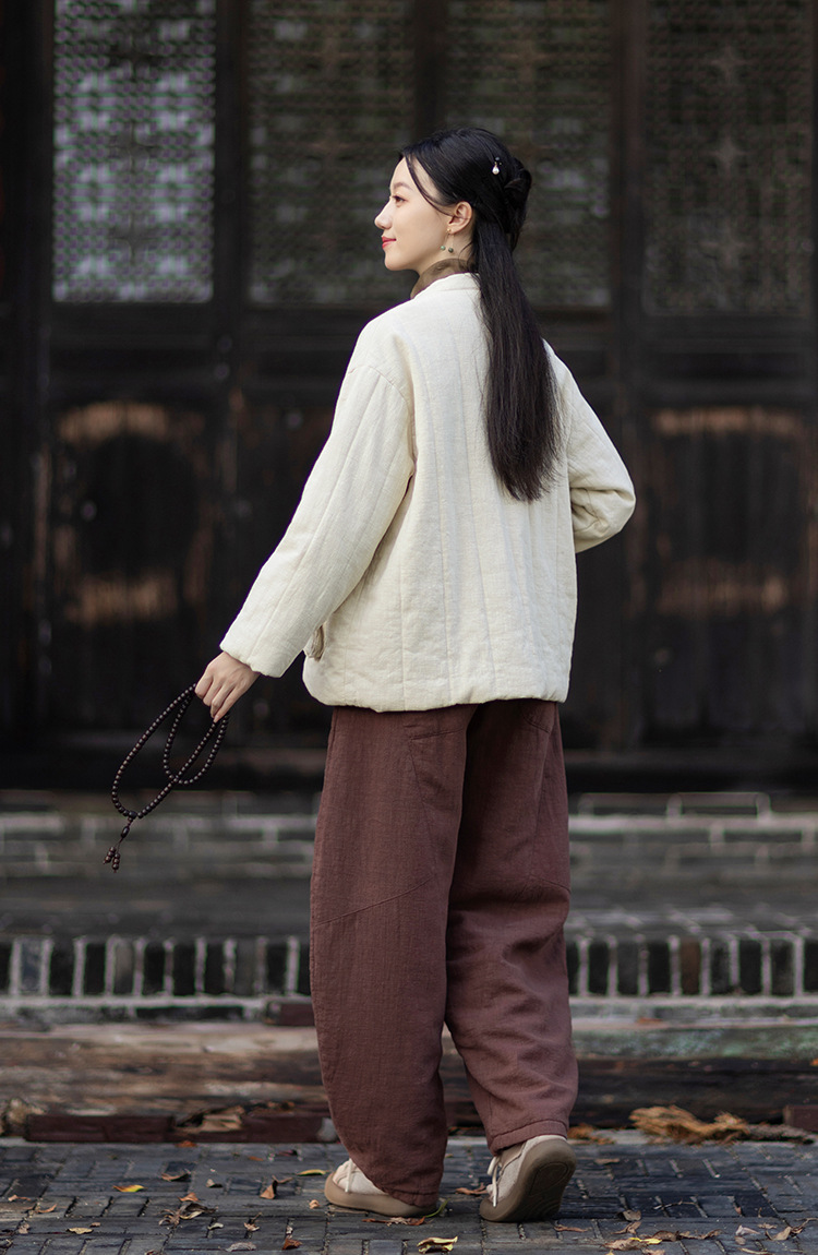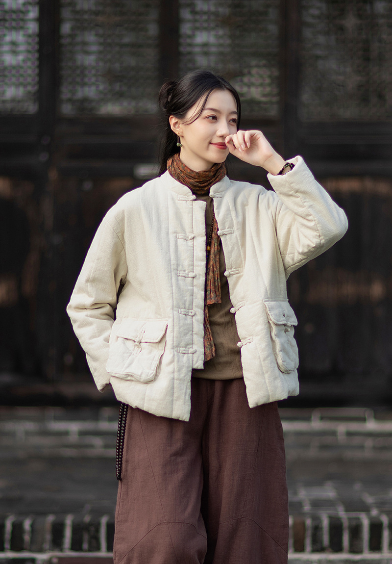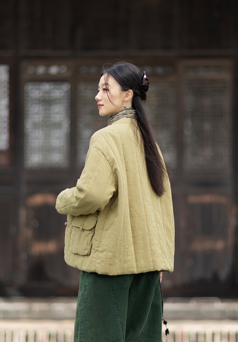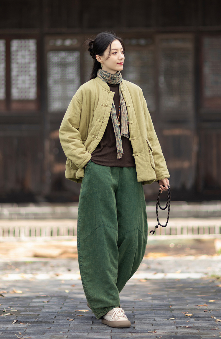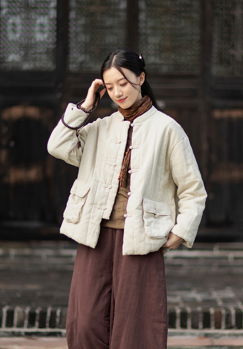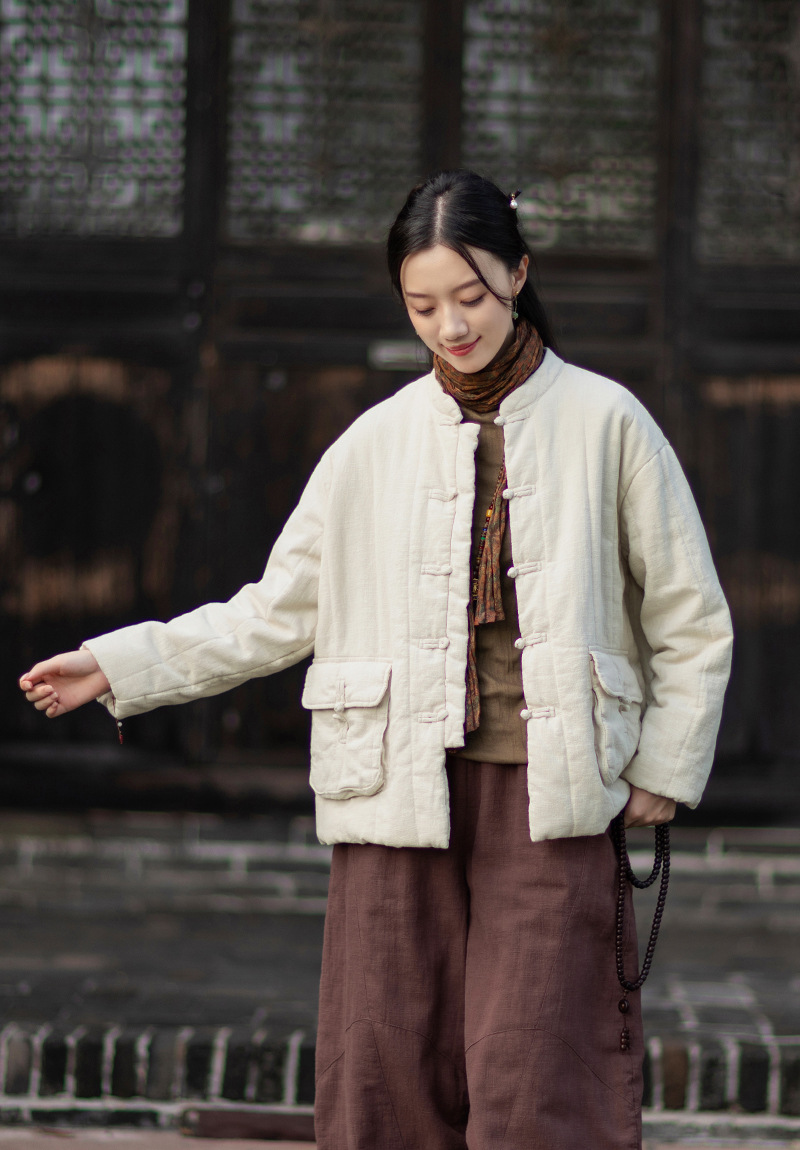 2025年冬新作 綿麻婦人服 新麻綿砂洗い加工 シンプル禅風 中綿入り厚手 女性用盤扣綿服