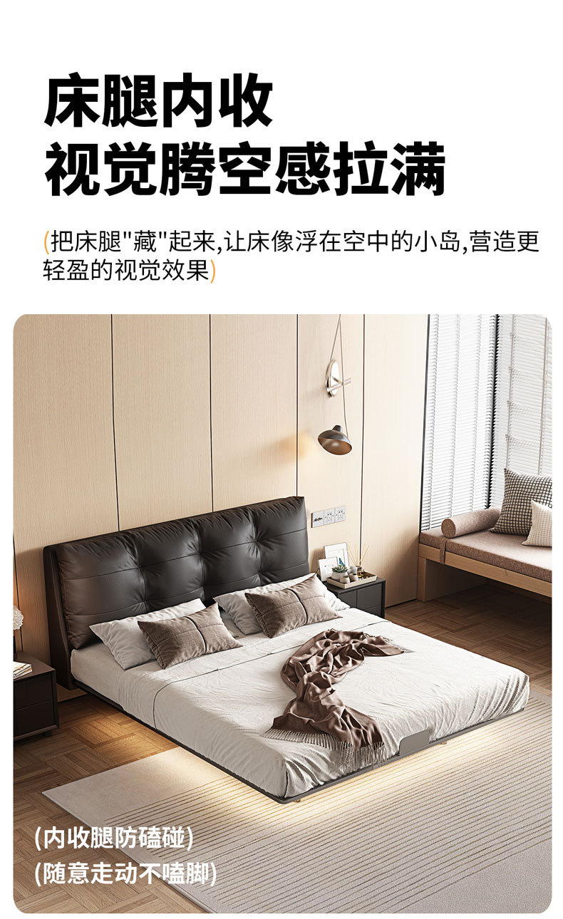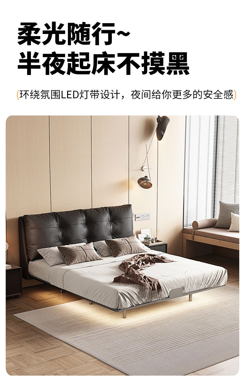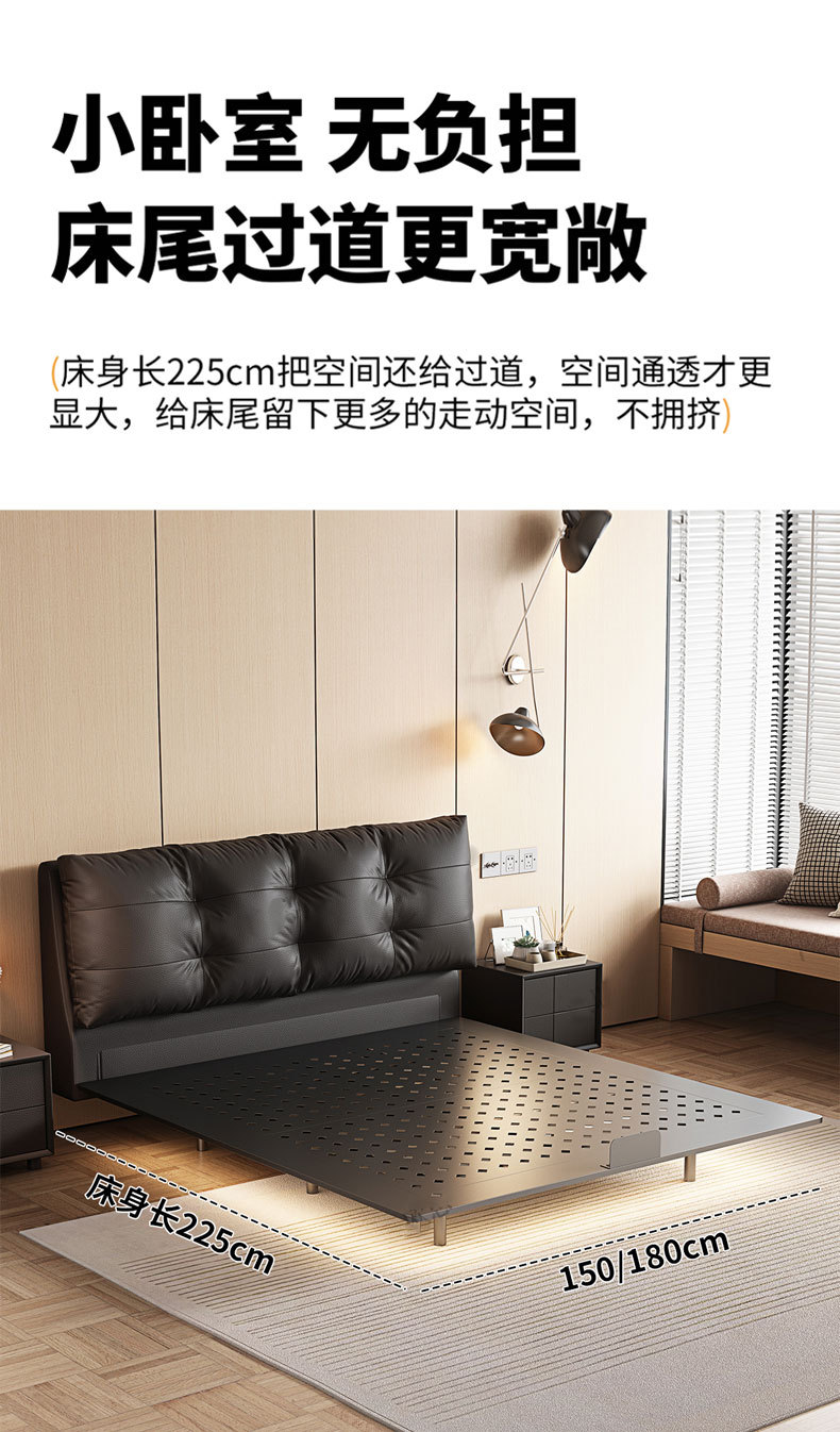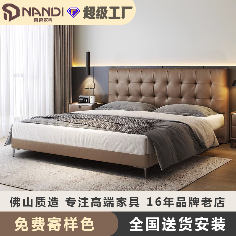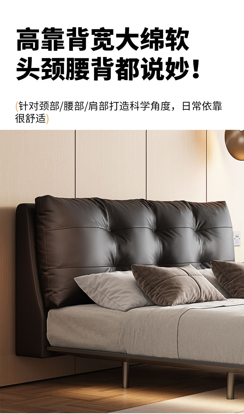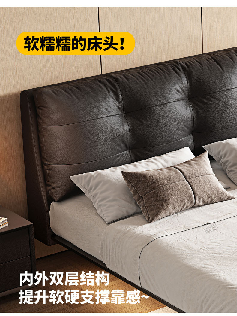 新款简约主次卧超薄床头省空间真皮床小户型齐边双人软包网红婚床