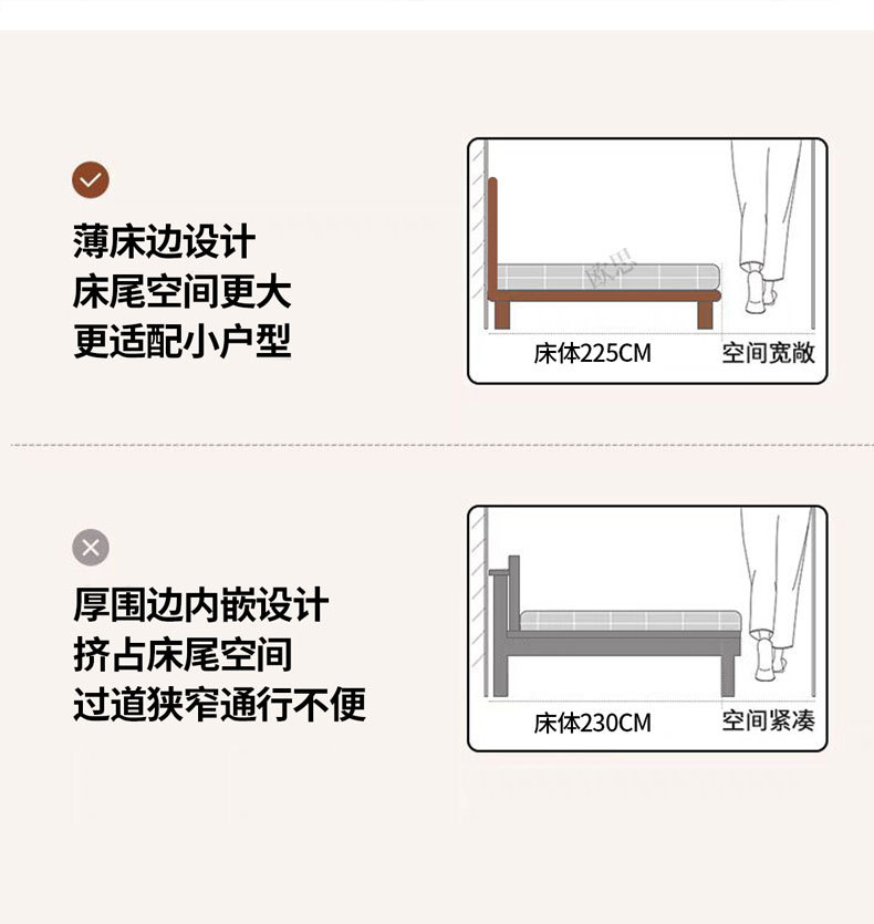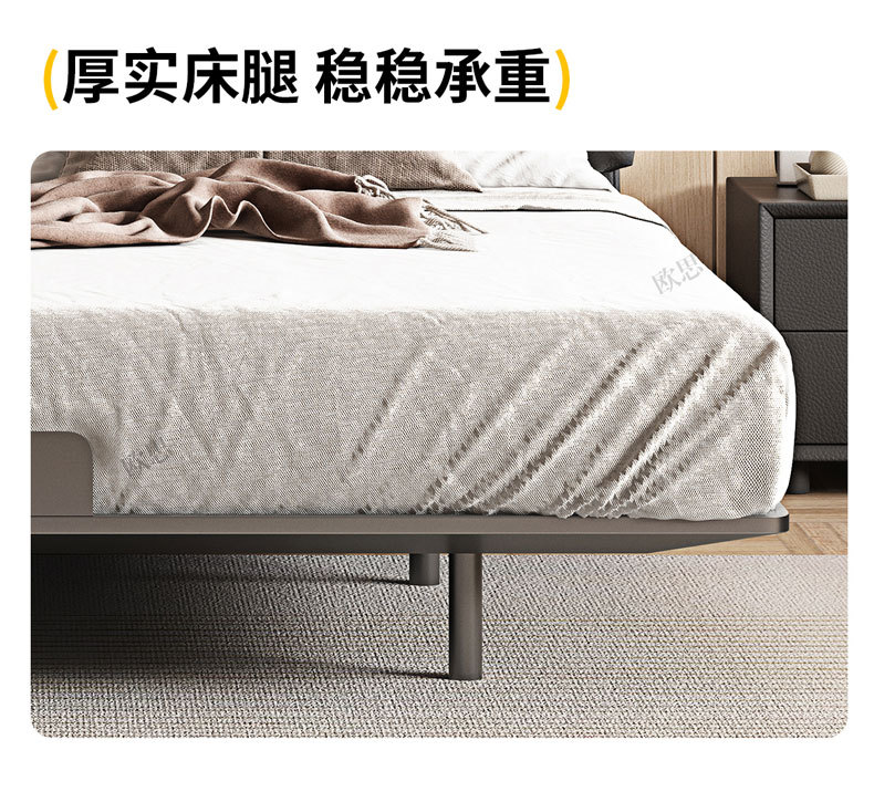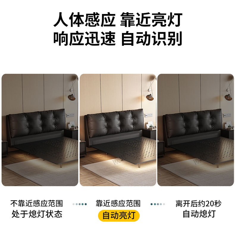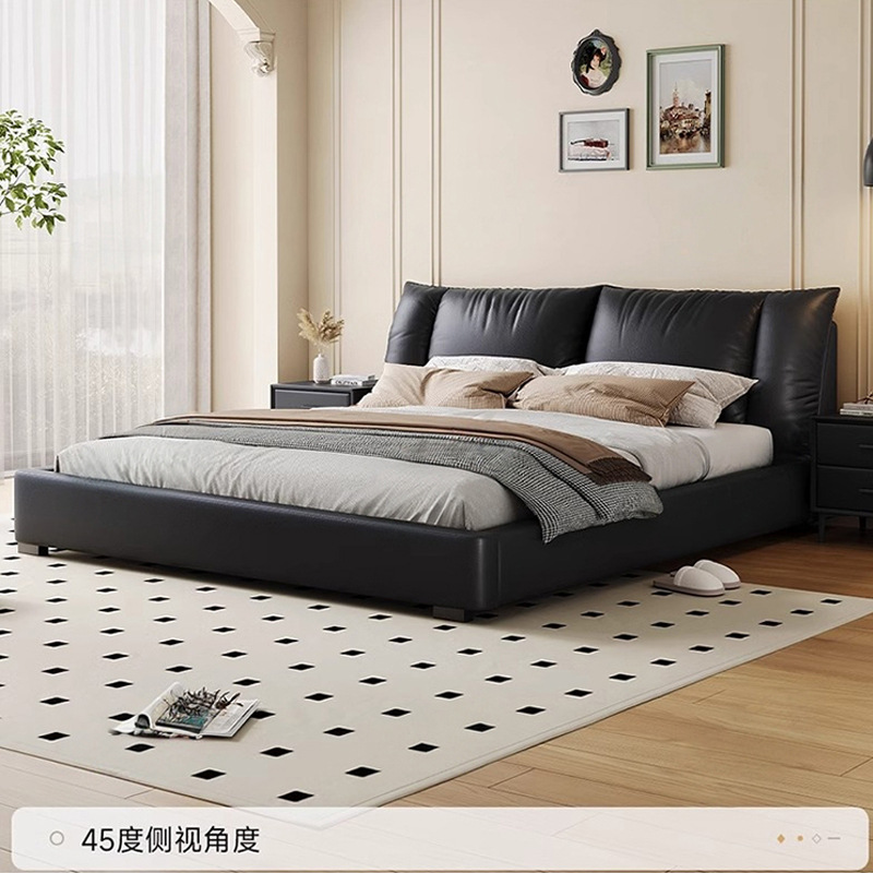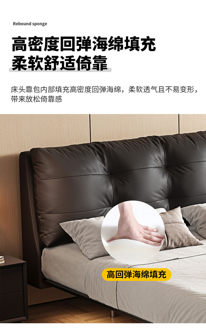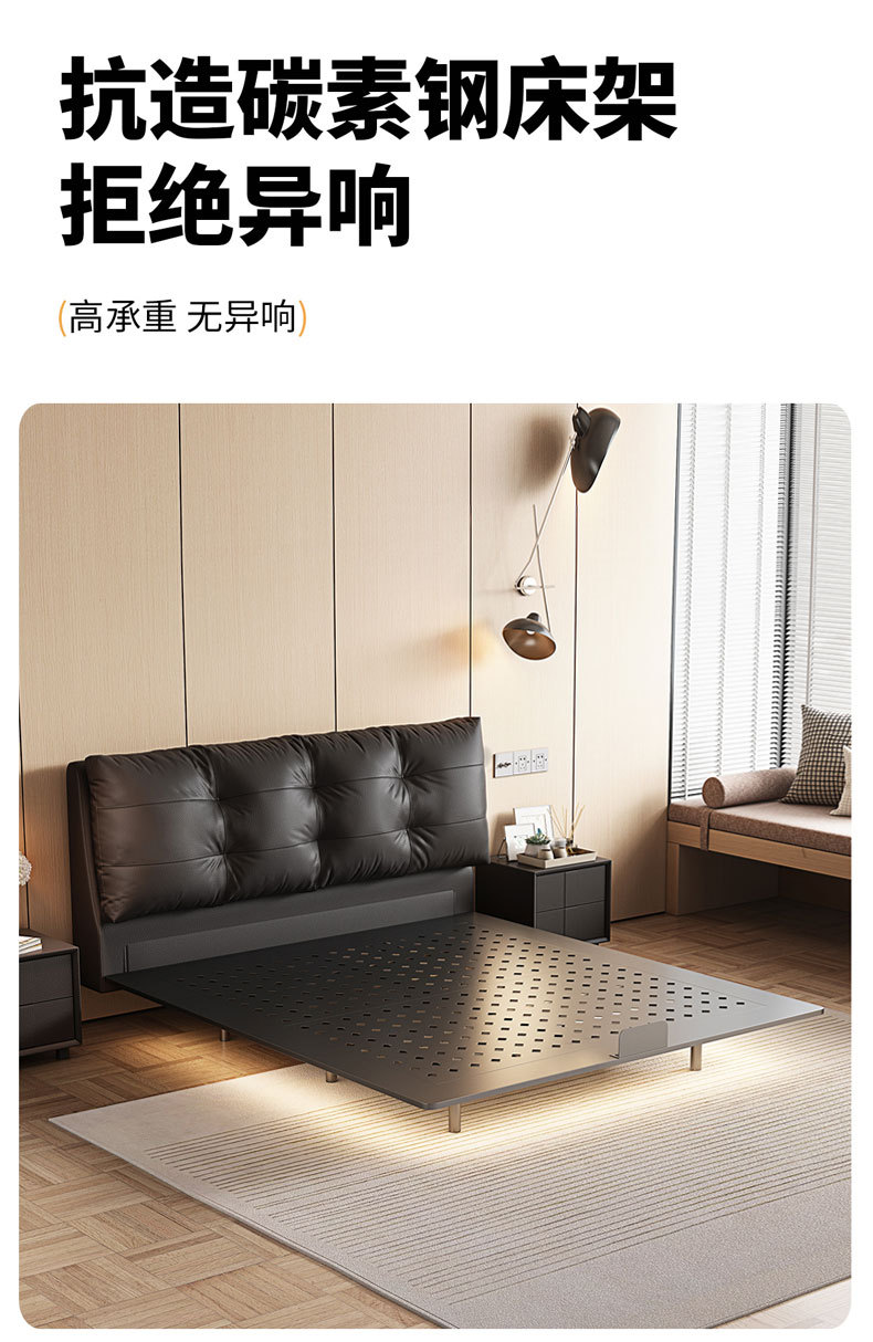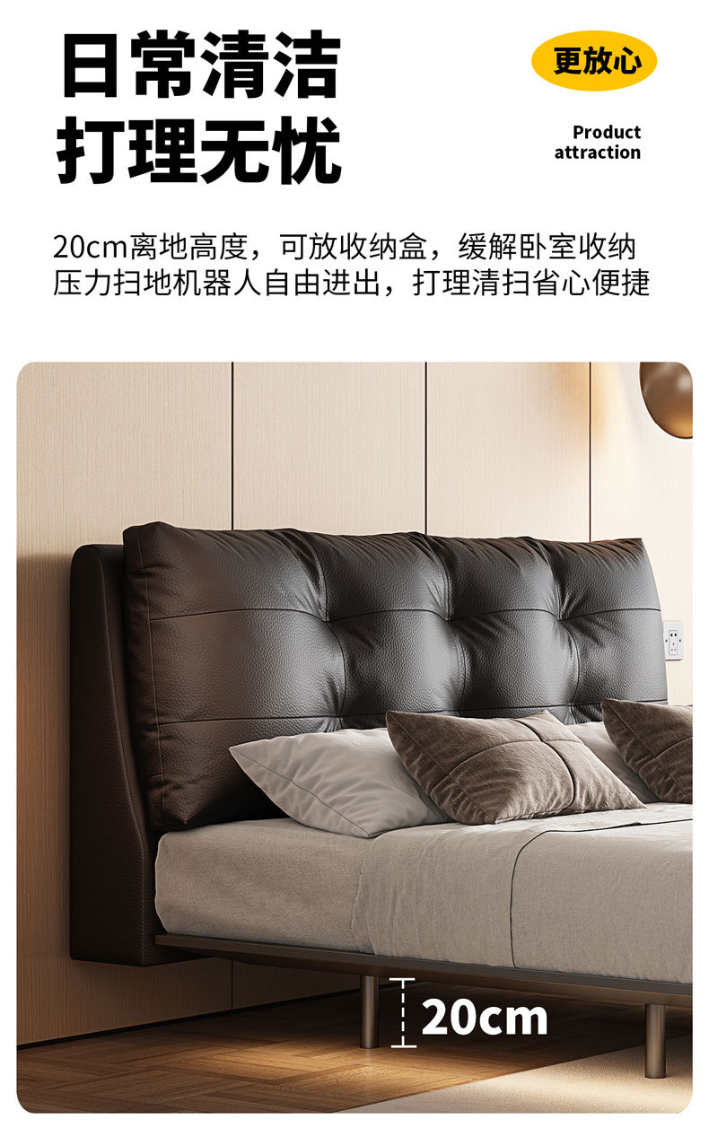 新款简约主次卧超薄床头省空间真皮床小户型齐边双人软包网红婚床