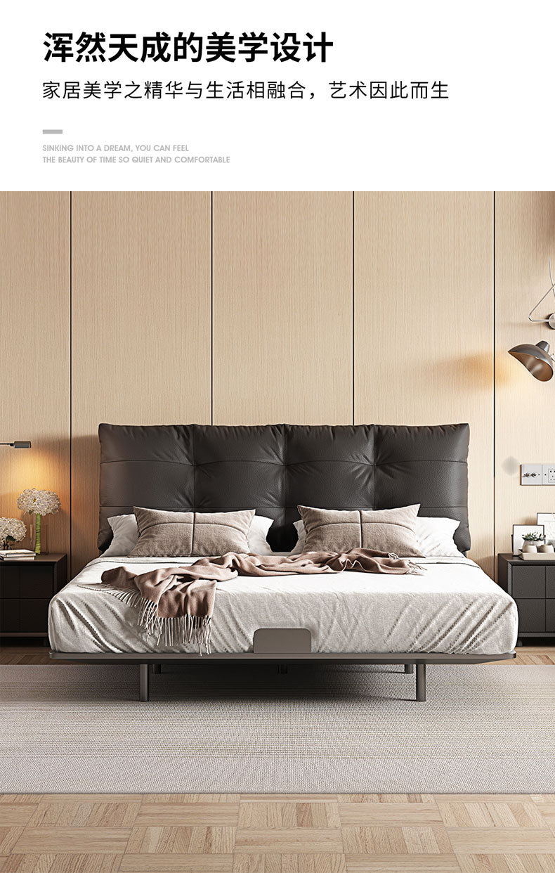 源头工厂黑色真皮床意式极简主卧软包双人床收纳气压高箱储物床