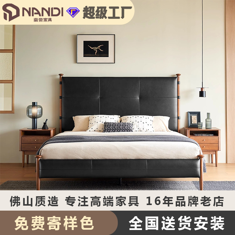源工場の二人の真皮ベッドフランス式レトロな主寝ベッドの頭層牛革実木軽贅沢1メートル8z桐ベッド