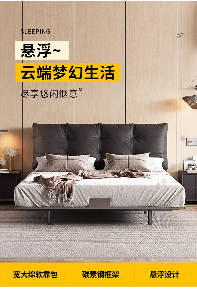 イタリア式の極めて簡単な懸濁ベッドは現代的にシンプルで、本革ベッドは主にネットの赤いベッドに寝ています。