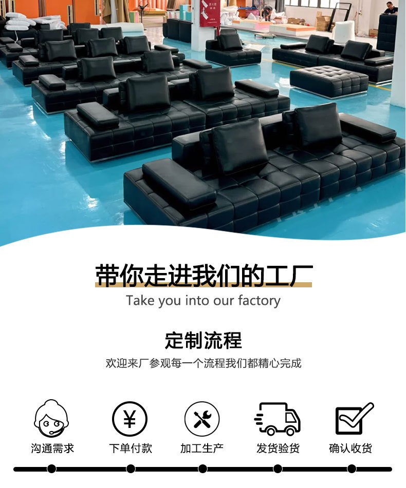 ローレンス直排真皮ソファーイタリア式極めてシンプルな客間大戸型別荘デザイナーの黒色革芸ソファー