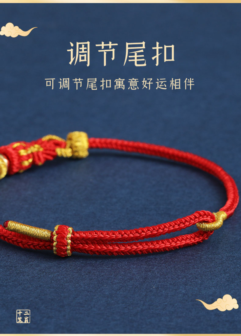 小金喜シンプルな干支年(馬年)太歳手紐、小紅紐ブレスレット、赤いカップルギフト、足首飾り、編み紐