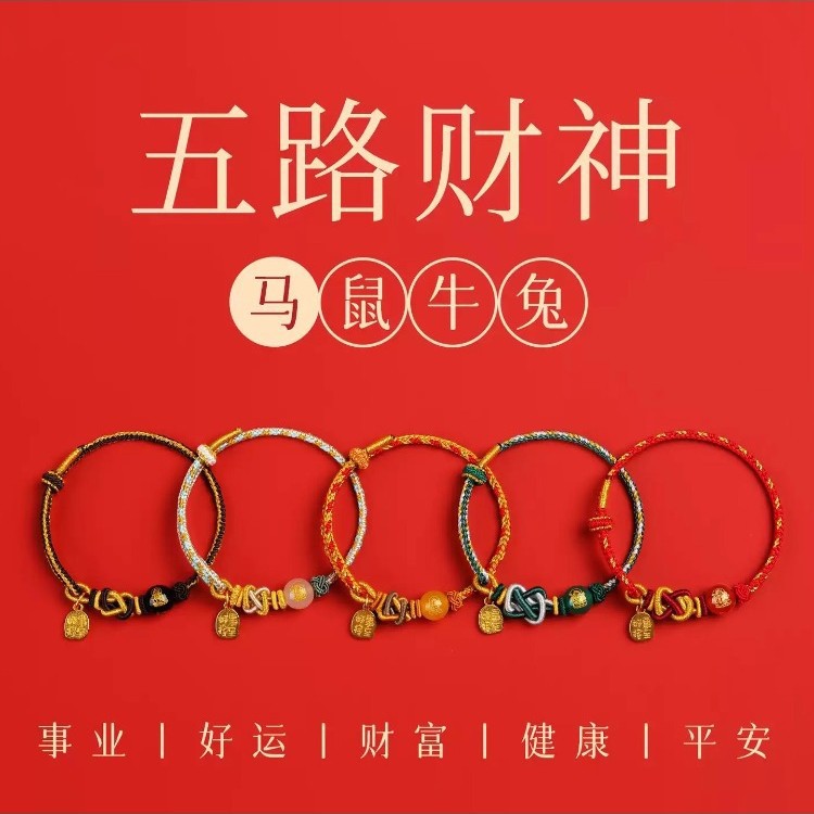 2026年马年本命年五路财神十二生肖太岁红绳手链红色编织绳玛瑙