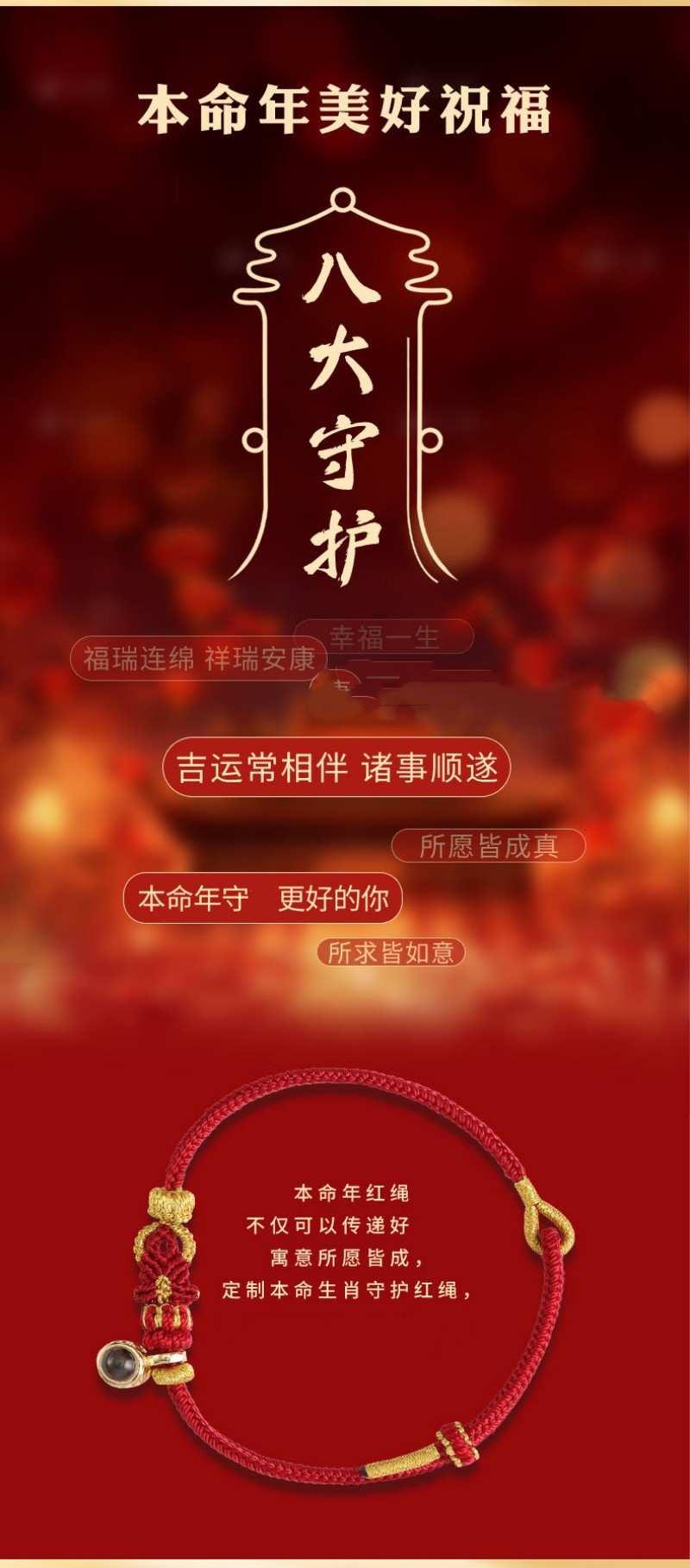八大守护神手绳手链新款马年本命年手链太岁红绳十二生肖保色投影