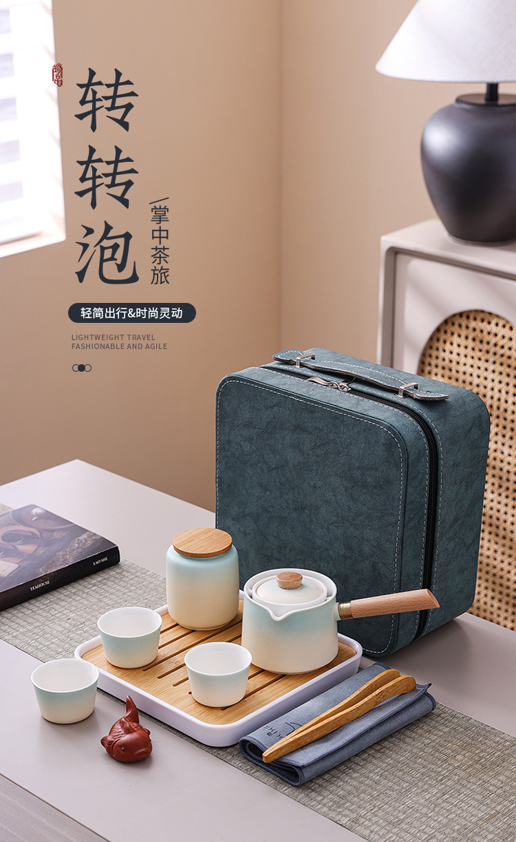 转转泡陶瓷旅行茶具套装360°自动旋转茶壶快客 懒人泡茶神器礼品
