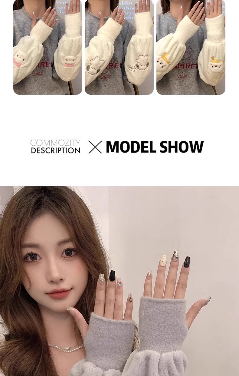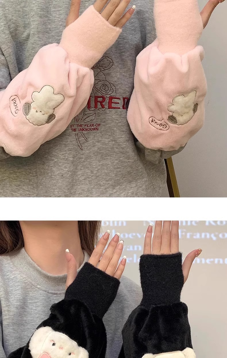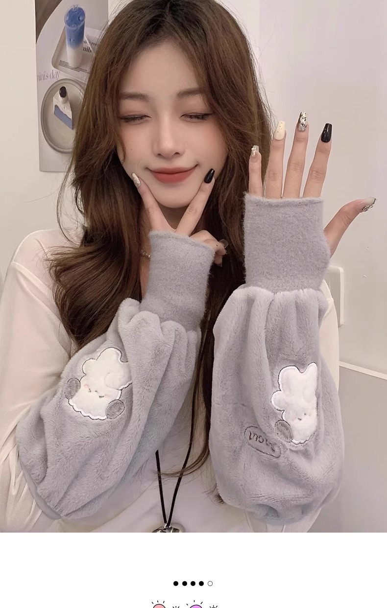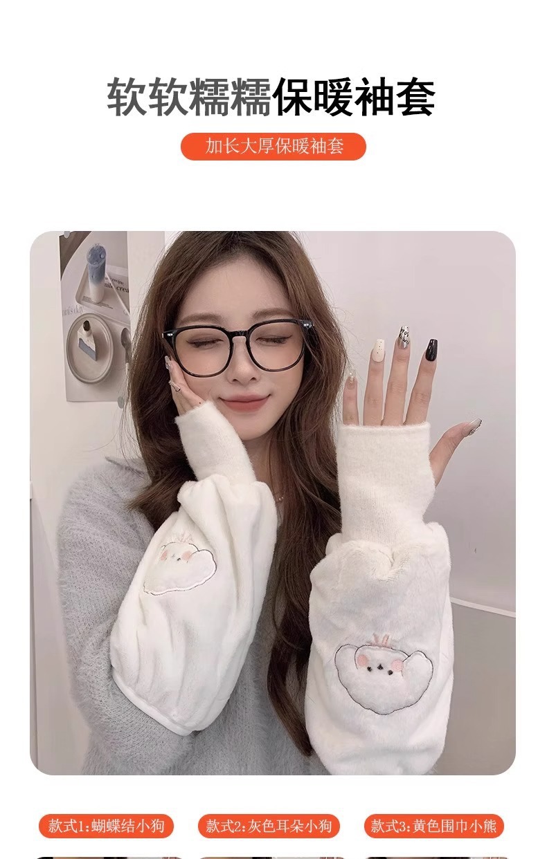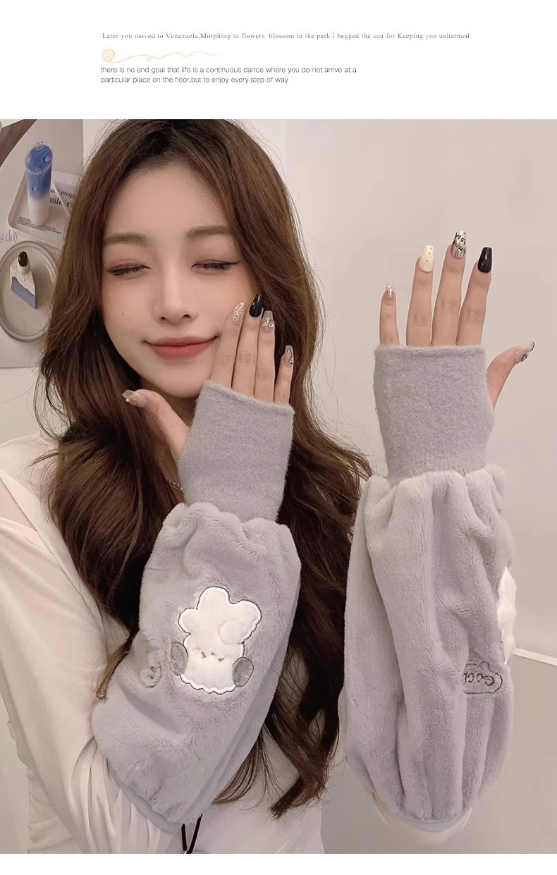 保温袖カバー二合一成人手袋一体秋冬汚れ防止手可愛い袖保護女子供漫画カバー袖