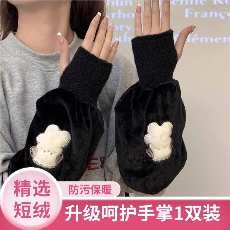 袖套手套秋冬加厚防污保暖套袖耐脏学生卡通二合一暖手护袖女半指