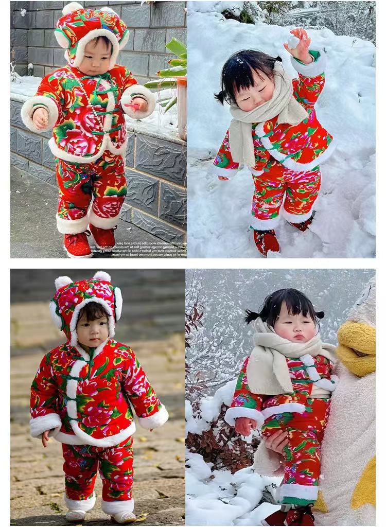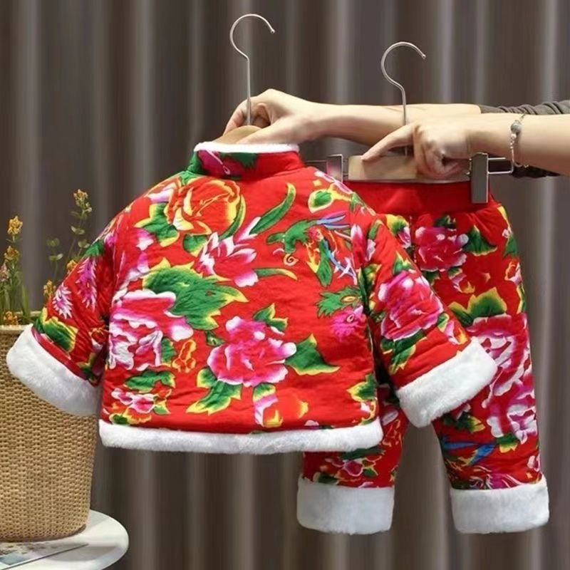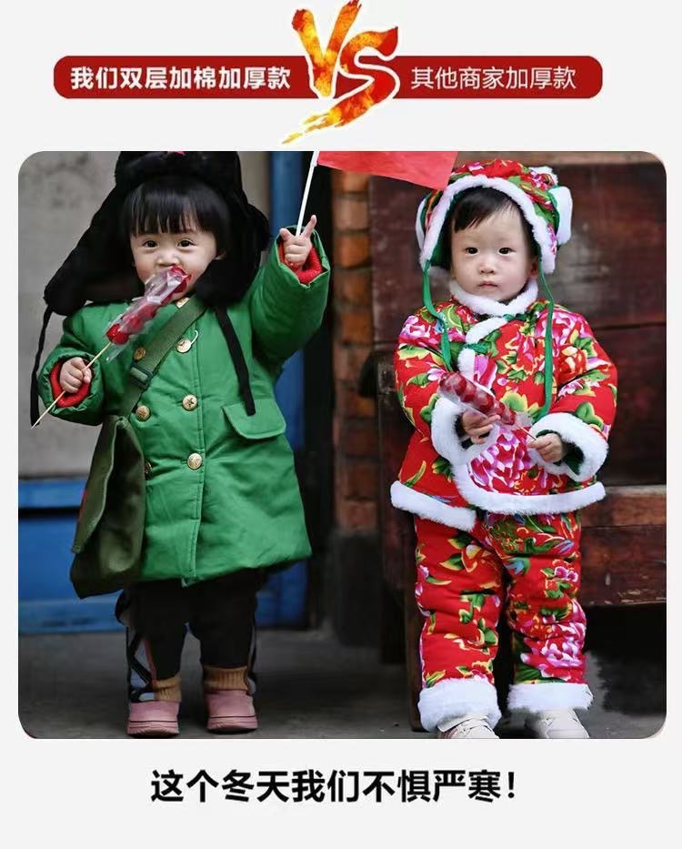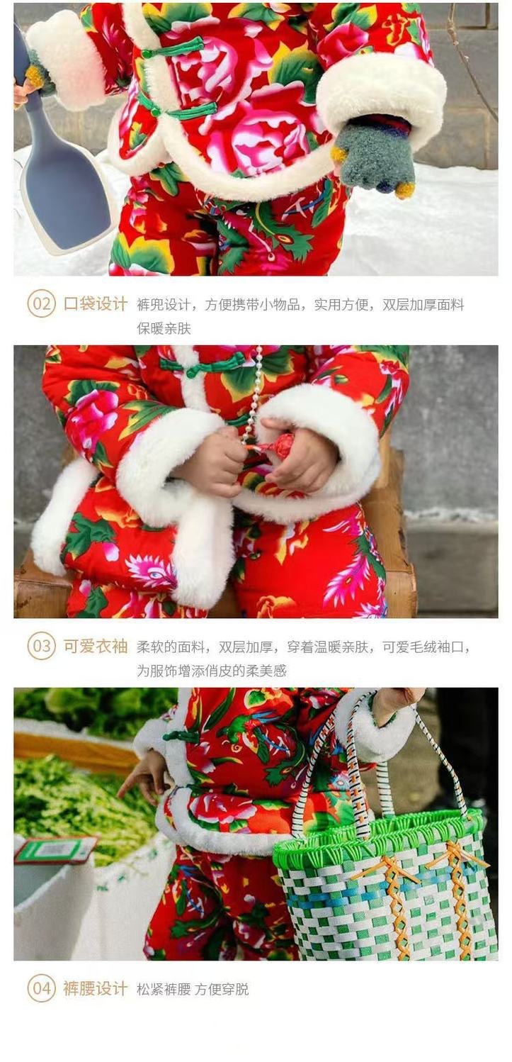 东北大花棉袄儿童手工套装宝宝冬季校服棉服女童加厚拜年男童