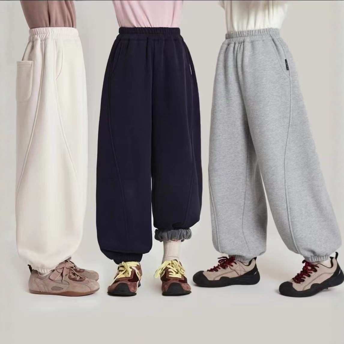 女童秋冬季裤子2025新款休闲女生加绒加厚蘑菇阔腿卫裤中大童裤子
