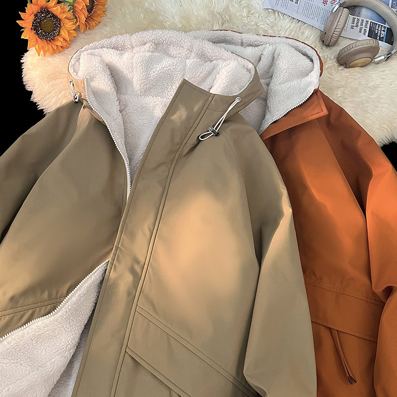 羊羔绒外套男秋冬季加绒加厚休闲宽松连帽夹克男生双面穿冬装棉衣