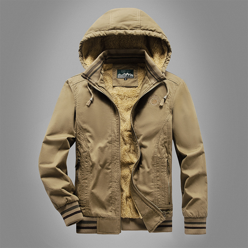 冬季新款男士商务休闲加绒保暖外套连帽保暖合体型夹克
