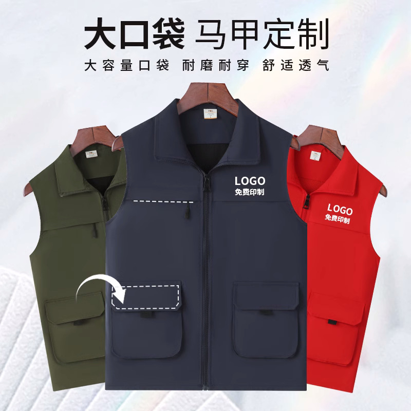 立体大口袋物流园建材市场工厂仓库背心防水马甲工作服定制印LOGO