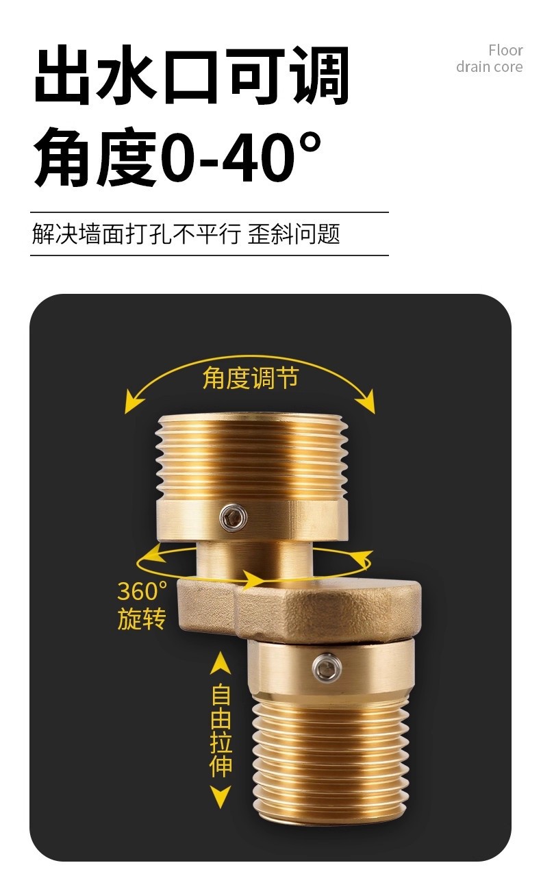 万向全铜淋浴龙头曲角偏心角度可调变径弯脚角度调节混水阀弯角