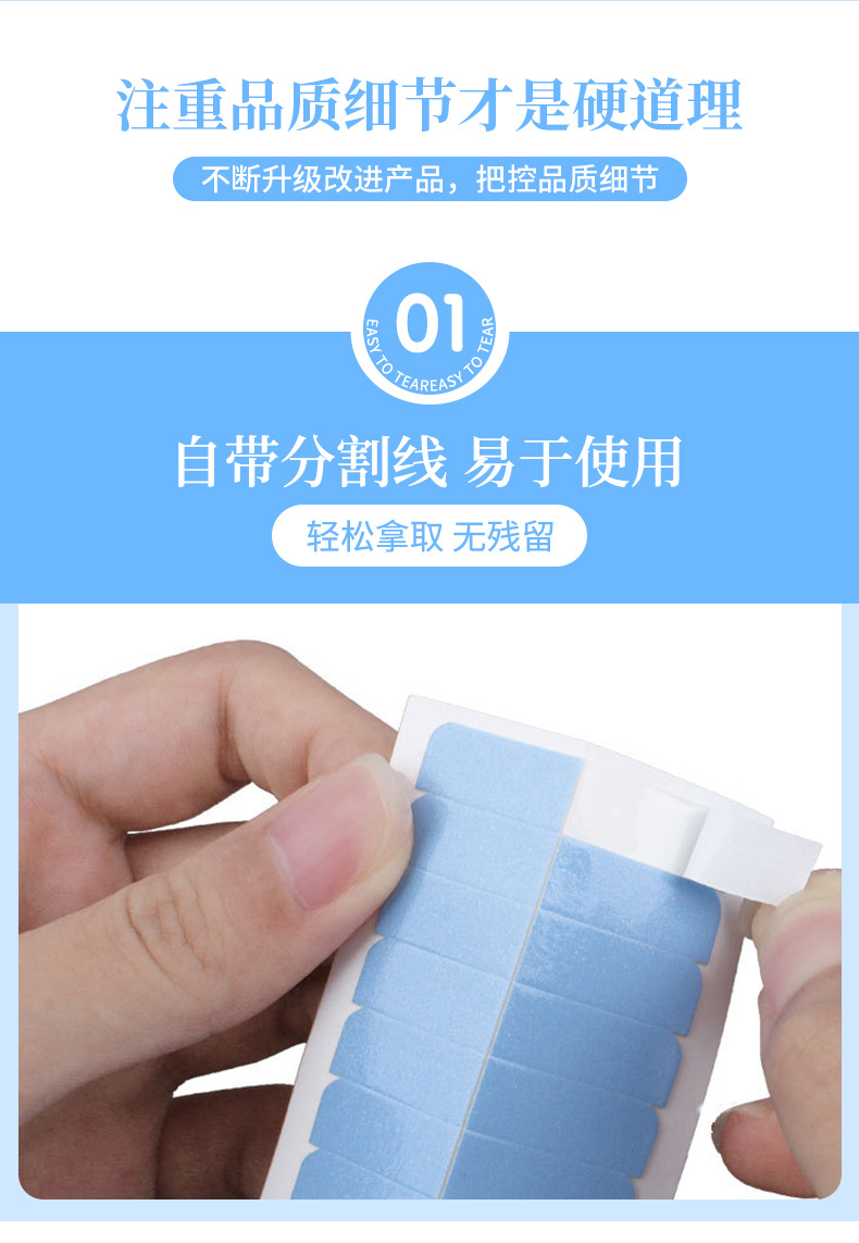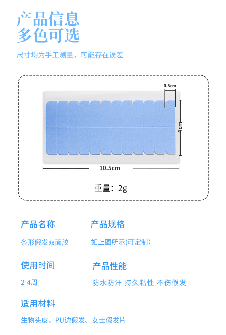 条形假发接发胶片补发织发蓝胶生物胶带无痕防水防汗假发双面胶片