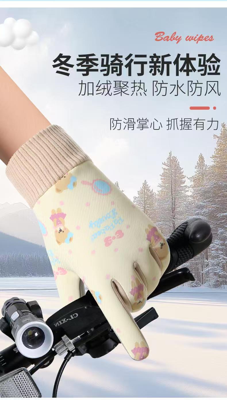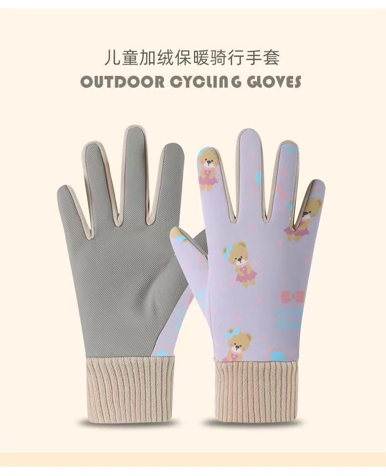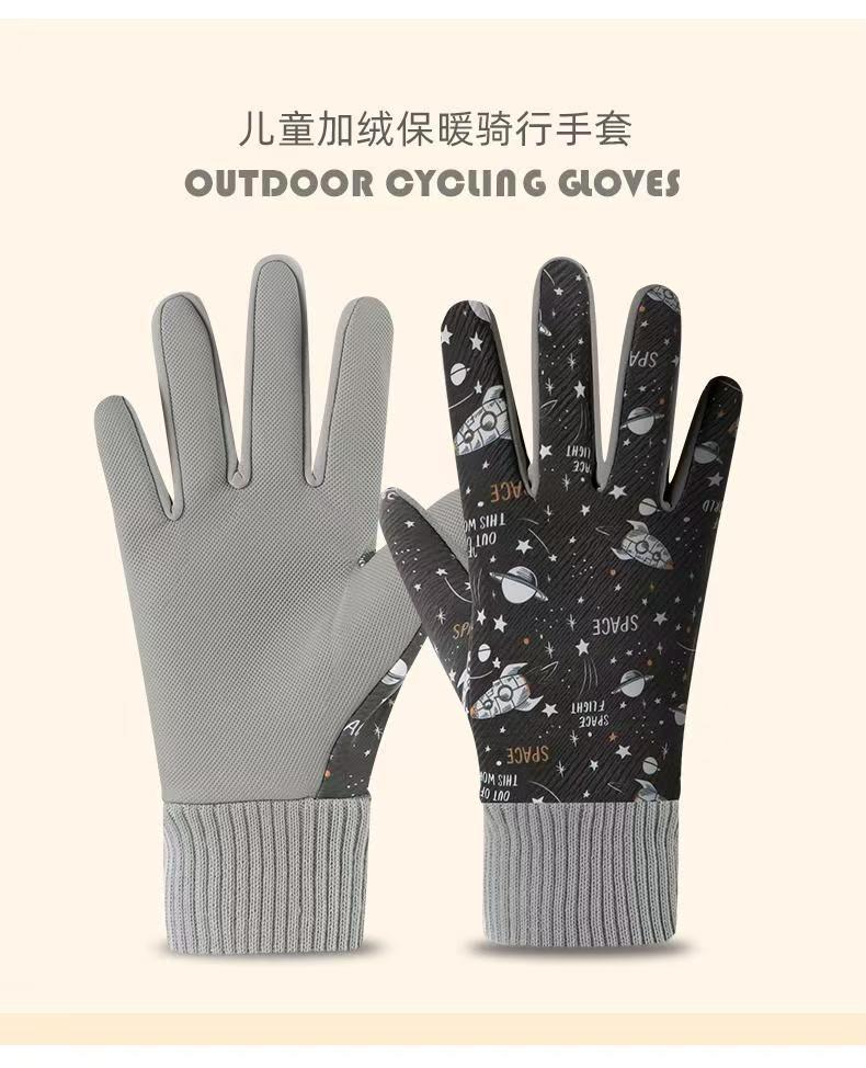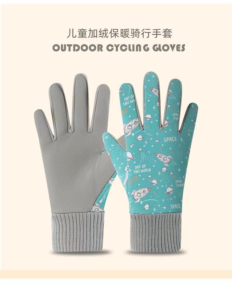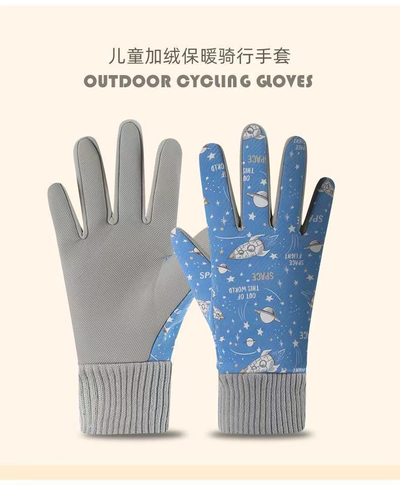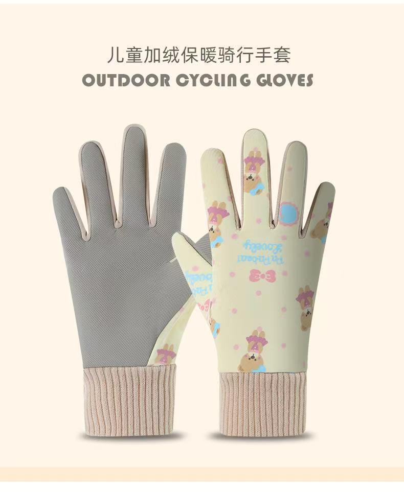 儿童秋冬卡通男女户外运动加绒加厚保暖骑行防风防泼水防寒冷手套