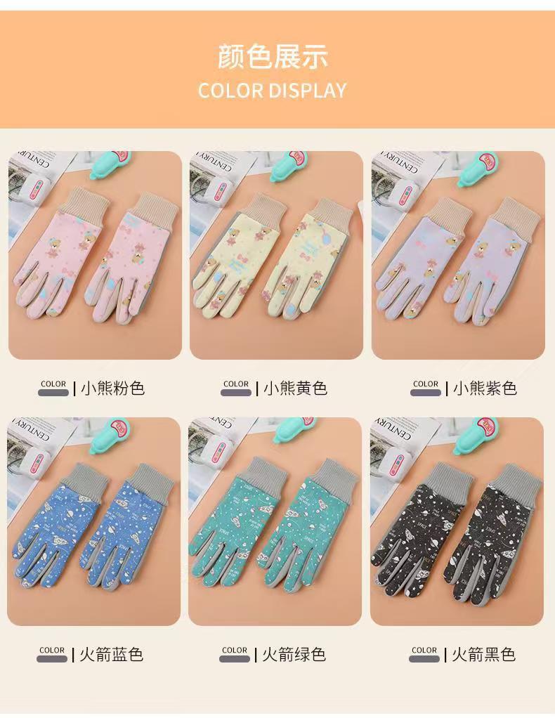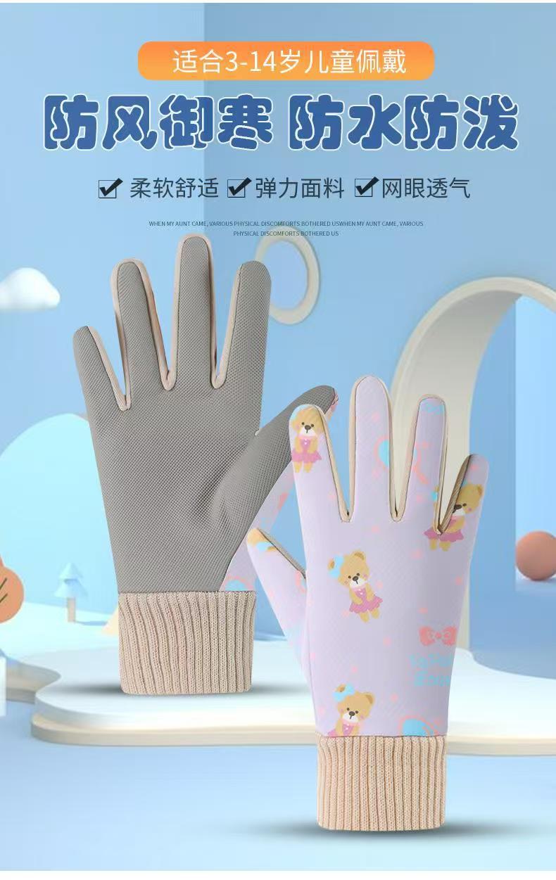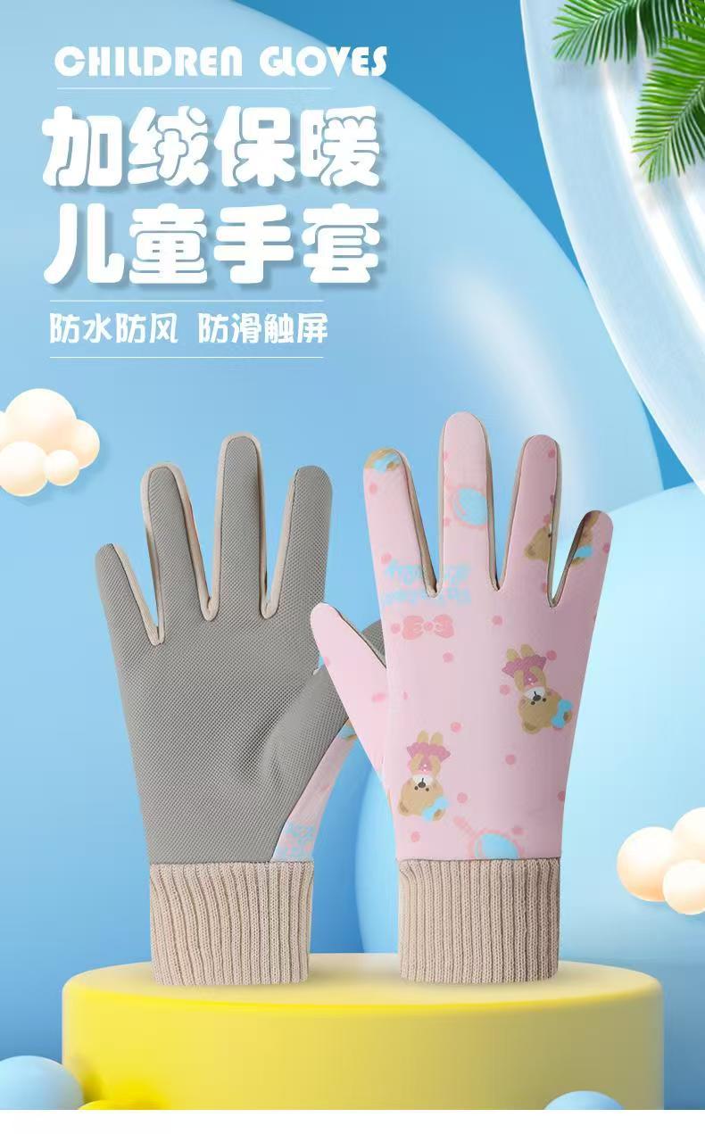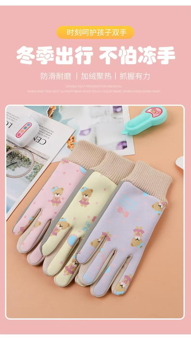 批发冬季儿童加绒保暖手套卡通男女童防风锁温手套户外防泼水手套