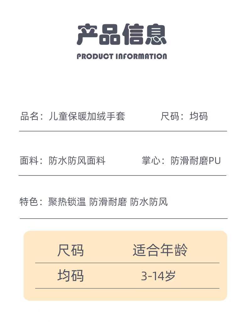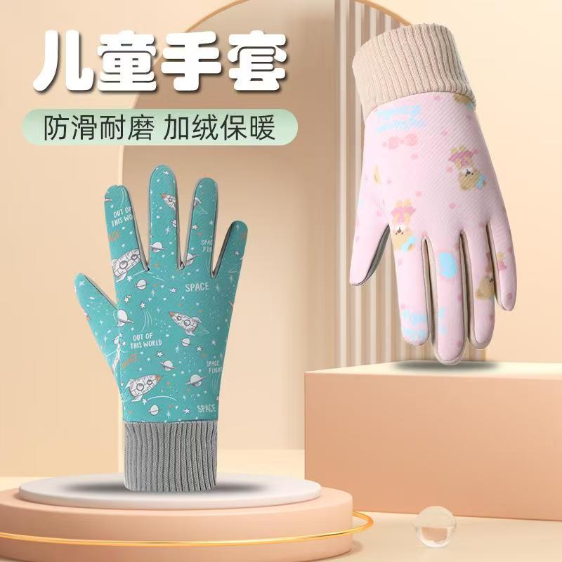 冬季儿童手套内里加绒掌心防滑宝宝手套户外骑行防寒儿童保暖手套