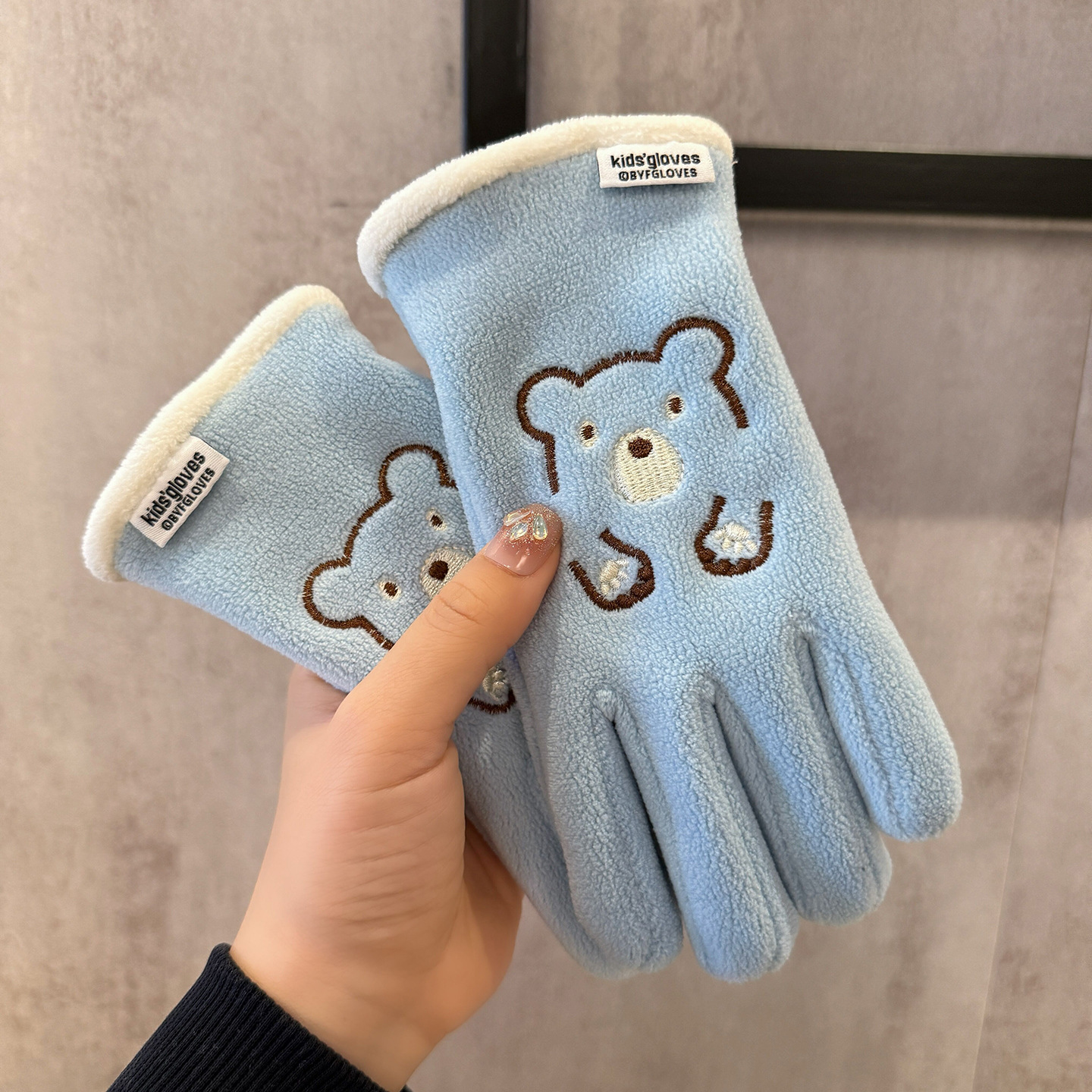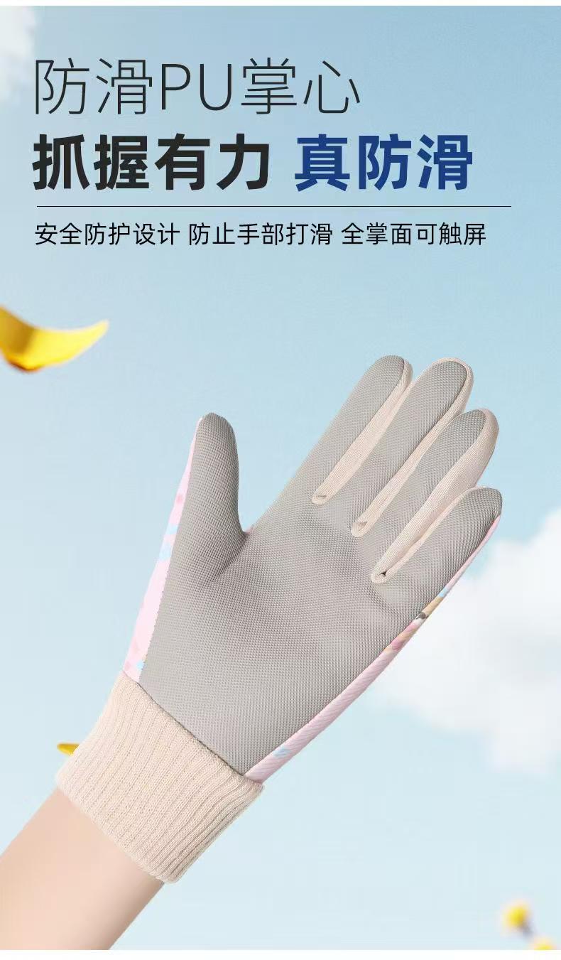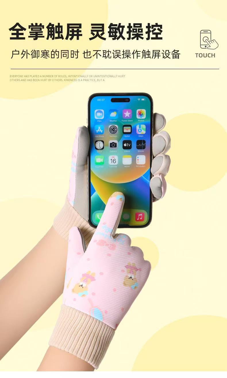 儿童手套男女冬季加绒保暖户外滑雪骑车防滑防水可爱五指骑行手套