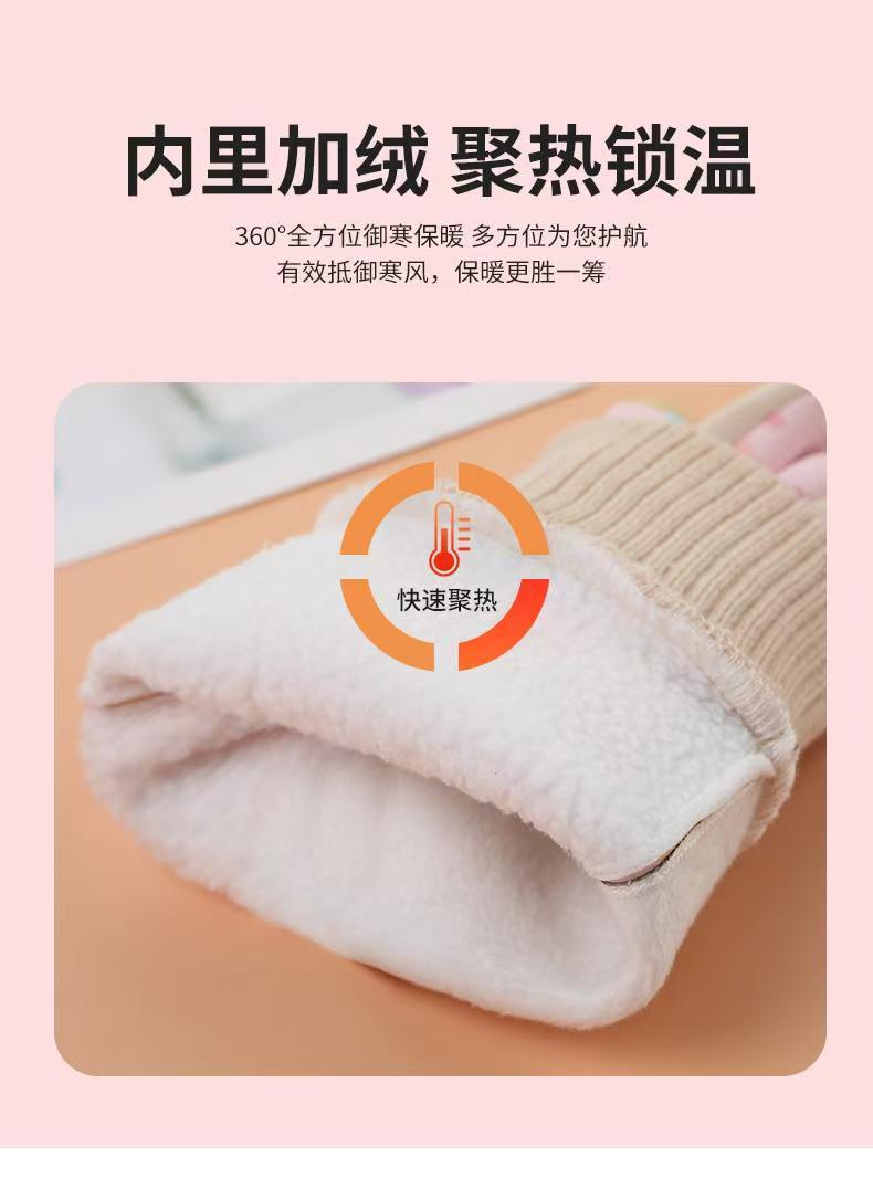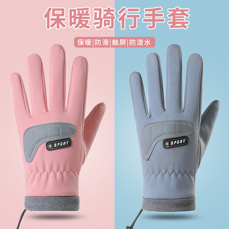 儿童保暖抽绳手套加绒男女孩户外运动骑车玩雪掌心防滑加绒手套