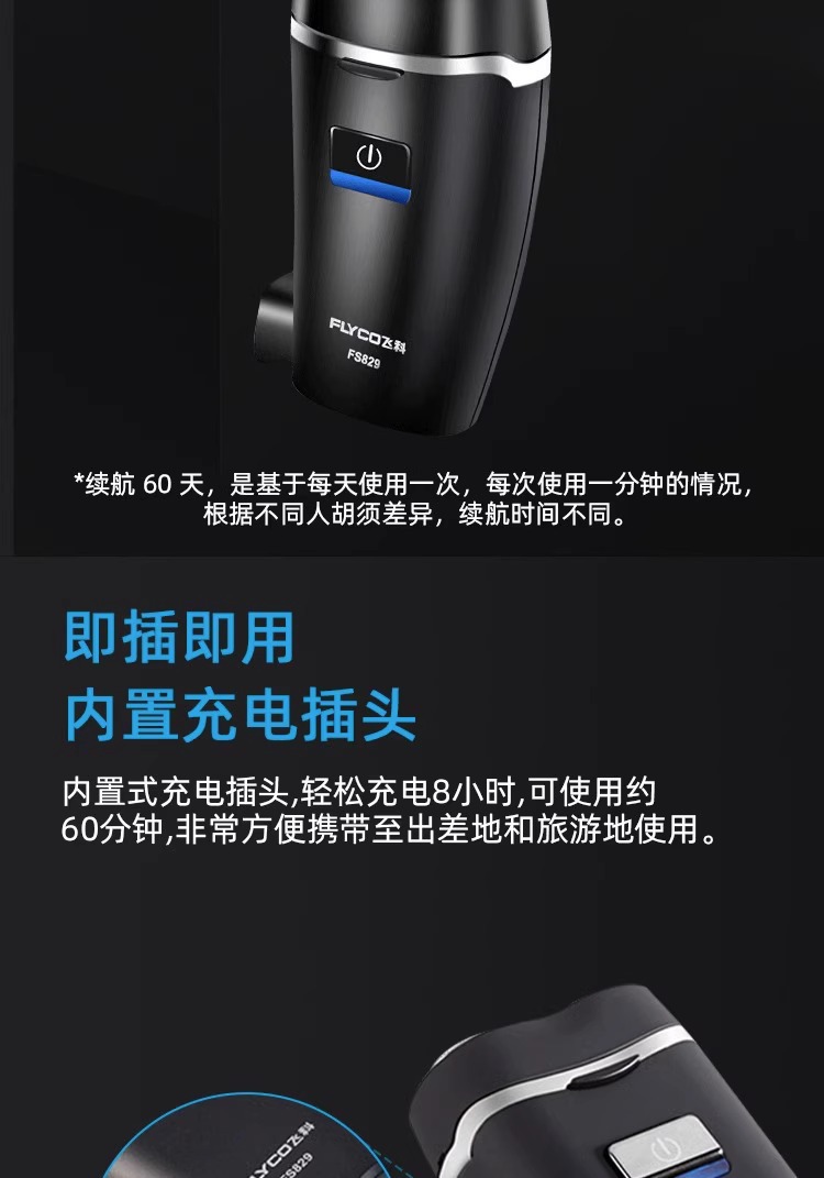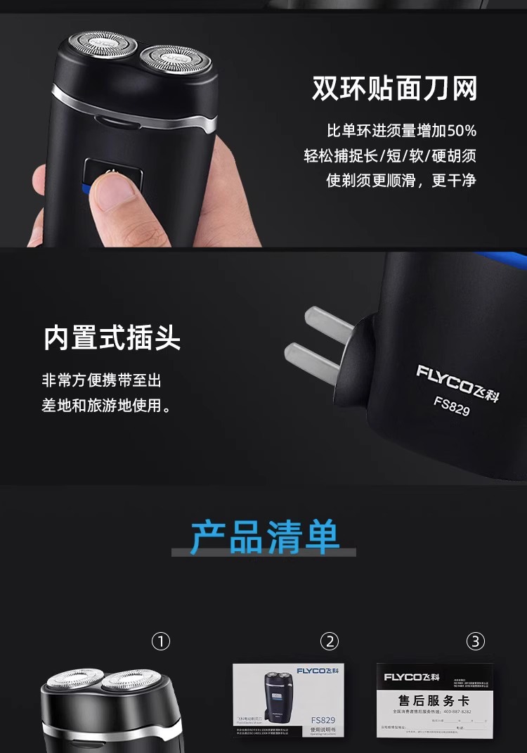 飞科剃须刀电动男士刮胡刀男年新款旅行便携式胡子胡须剃胡款