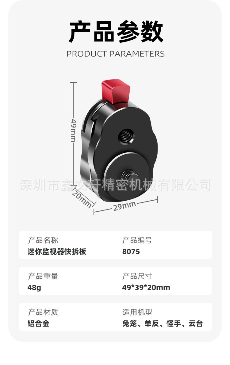 迷你监视器用快装板快拆板怪手魔术臂扩展配件 适用相机兔笼拓展